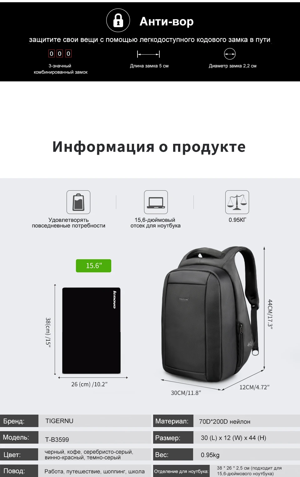 Я очень доволен этой сумкой, цена, Оплаченная, не может быть абсолютно ничего лучше здесь, в Бразилии, и также учитывайте Лучший веб-сайт AliExpress. Отличные швы, высокое качество, получите тост с навесным замком, кабели работают идеально, молния очень хорошая, легкий рюкзак простой, полностью Противоугонная. Если вам нужен рюкзак с достаточным внутренним пространством, советуем найти вариант, потому что я надел бутылку воды, блузы, штаны и теннис, и она уже заполнена, Теперь, если вы используете рюкзак по умолчанию, рекомендуем tigernu-один из лучших брендов рюкзака, стоит каждого пенни! Примечание 1000. Очень хорошо упаковано, еще один момент.