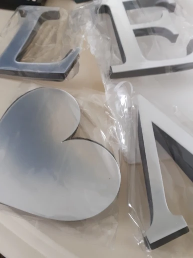 хорошие буквы. пришли все целые. хорошо упакованы в твердую оболочку. цвет серебристый. зеркальный. еще не клеили. размер соответствует. все 4 буквы в одной посылке. при заказе надо каждую букву положить в корзину и потом оформить один заказ. все прекрасно отслеживалось. Все нормально. Спасибо.