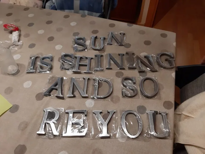 Товар прибыл в ближайшее время, около 20 дней через AliExpress прямой, даже в pandemia, конец года + Черная пятница. Товар хорошо упакован и в идеальном состоянии. Продавец был внимательен и удовлетворил требования хорошей упаковки. Буквы красивые, изящные, с клеем для фиксации. Хорошо выглядит. Легко + для применения EZ. Рекомендуем! Хорошая цена