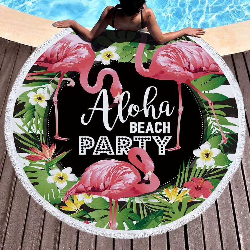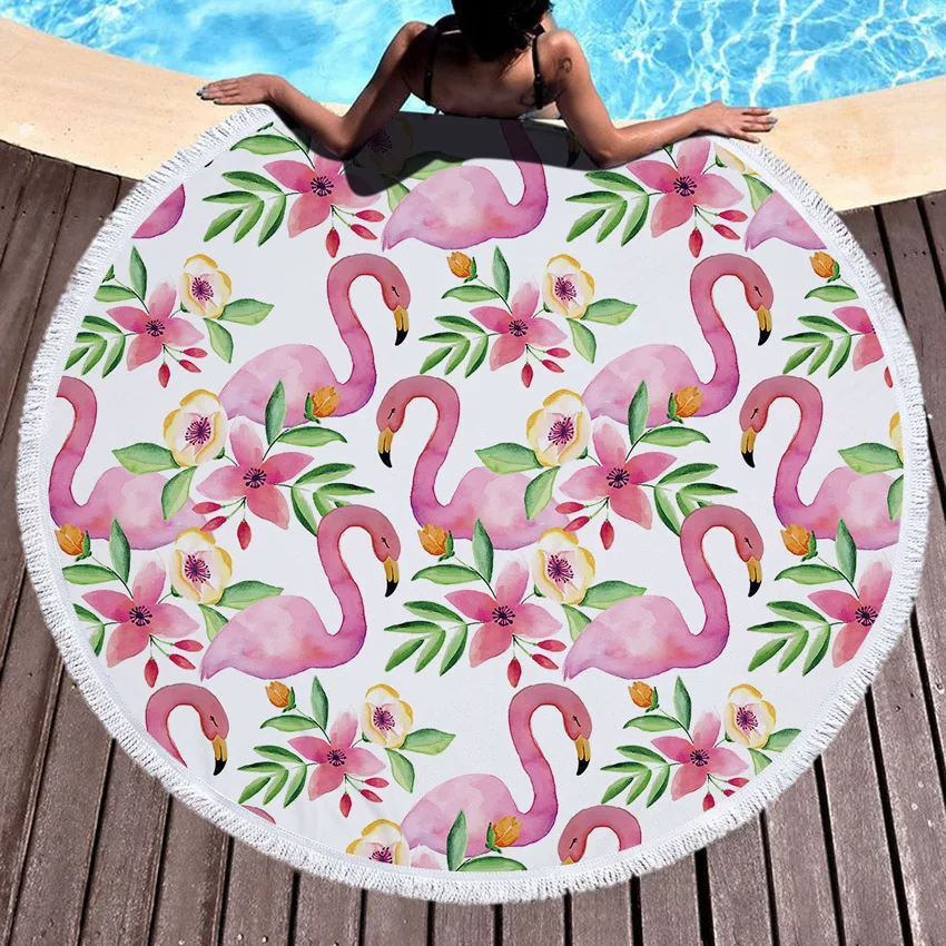 Пляжное полотенце с кисточками, Цветочный Фламинго, подарок, банное полотенце для душа для взрослых, 500 г, микрофибра, 150 см, коврик для пикника, йоги, одеяло