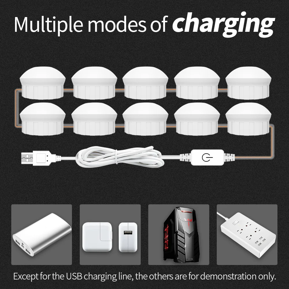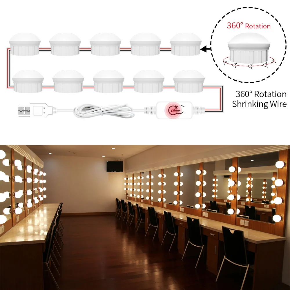 Светодиодная лампа для зеркала для макияжа с USB, комплект лампочек...