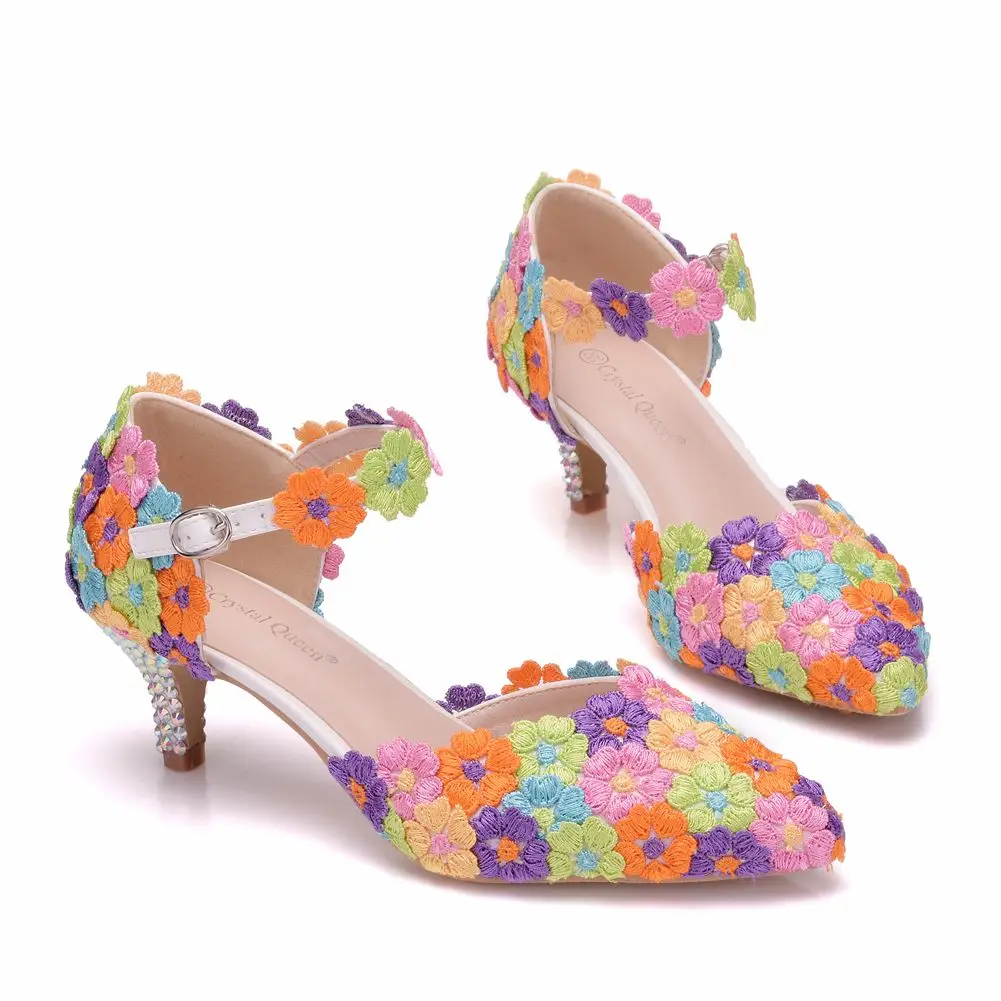 Туфли-лодочки женские свадебные на высоком каблуке 5 см, с кружевом