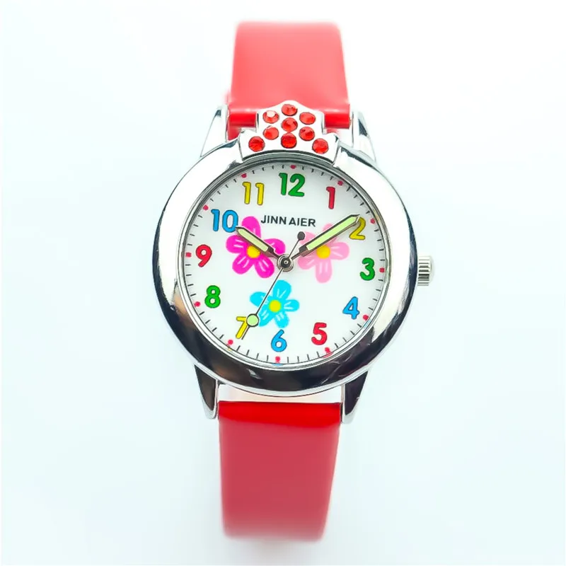 Детские Кварцевые часы с цветком и кристаллом, на кожаном ремешке