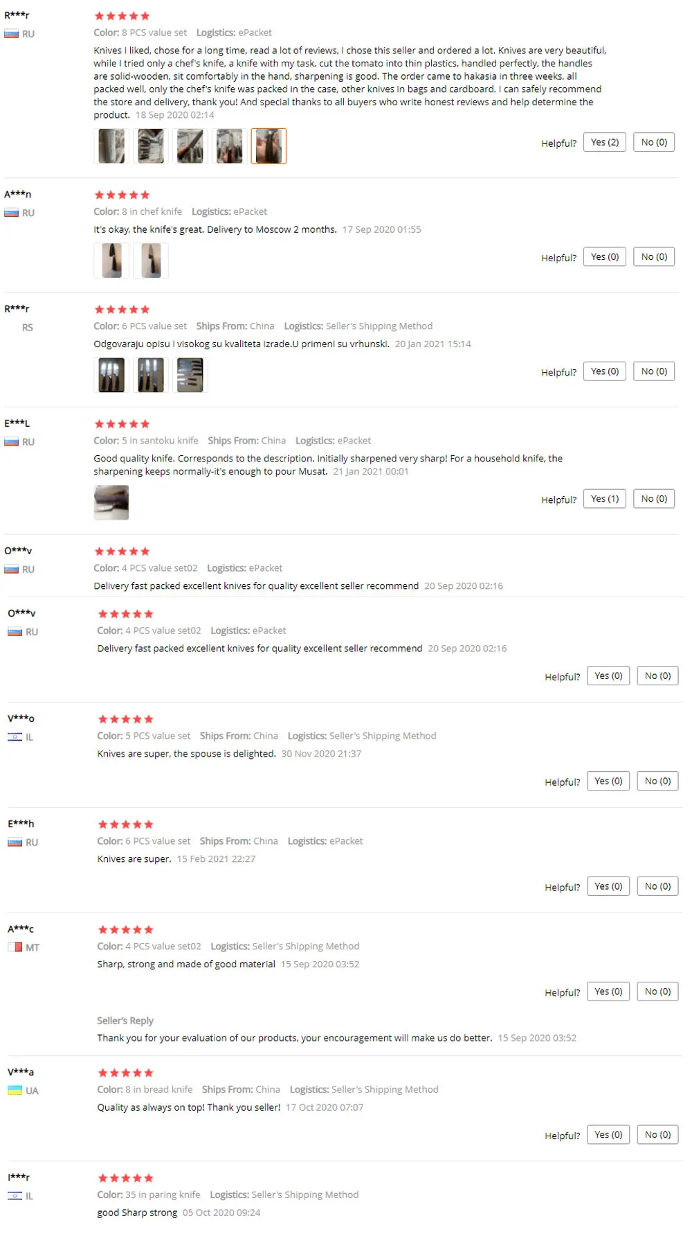 Страна: RU Color: 3.5 in Paring Knives Доставка: Seller's Shipping Method 08.12.2020