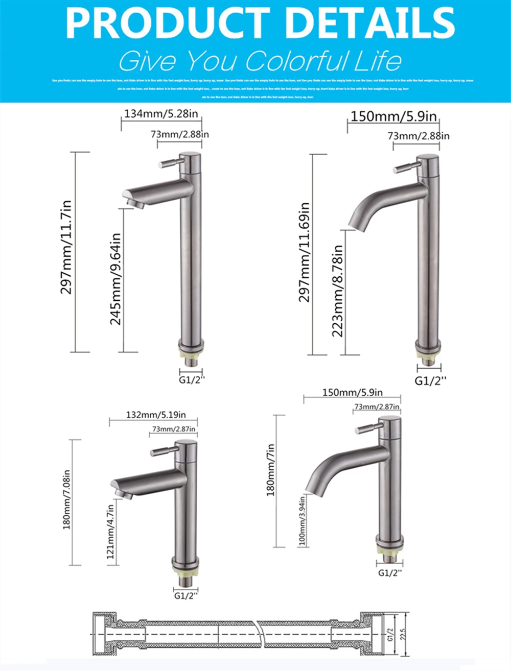 Смеситель для раковины из нержавеющей стали Mci, 304