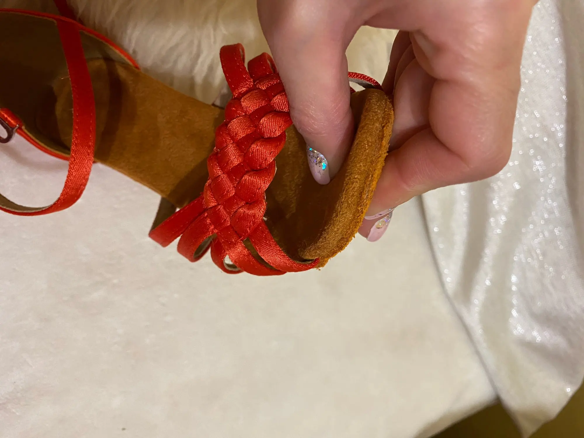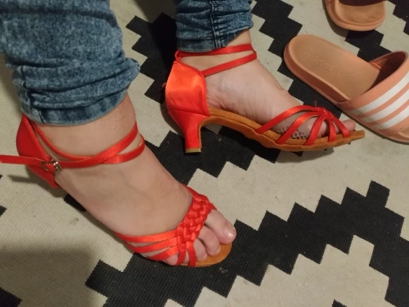 по ноге подошли идеально, размер в размер точно как заказала. уже опробовала на танцах, сидят удобно сшиты очень аккуратно, нитки не торчат, приятный приглушённый красный цвет. спасибо!