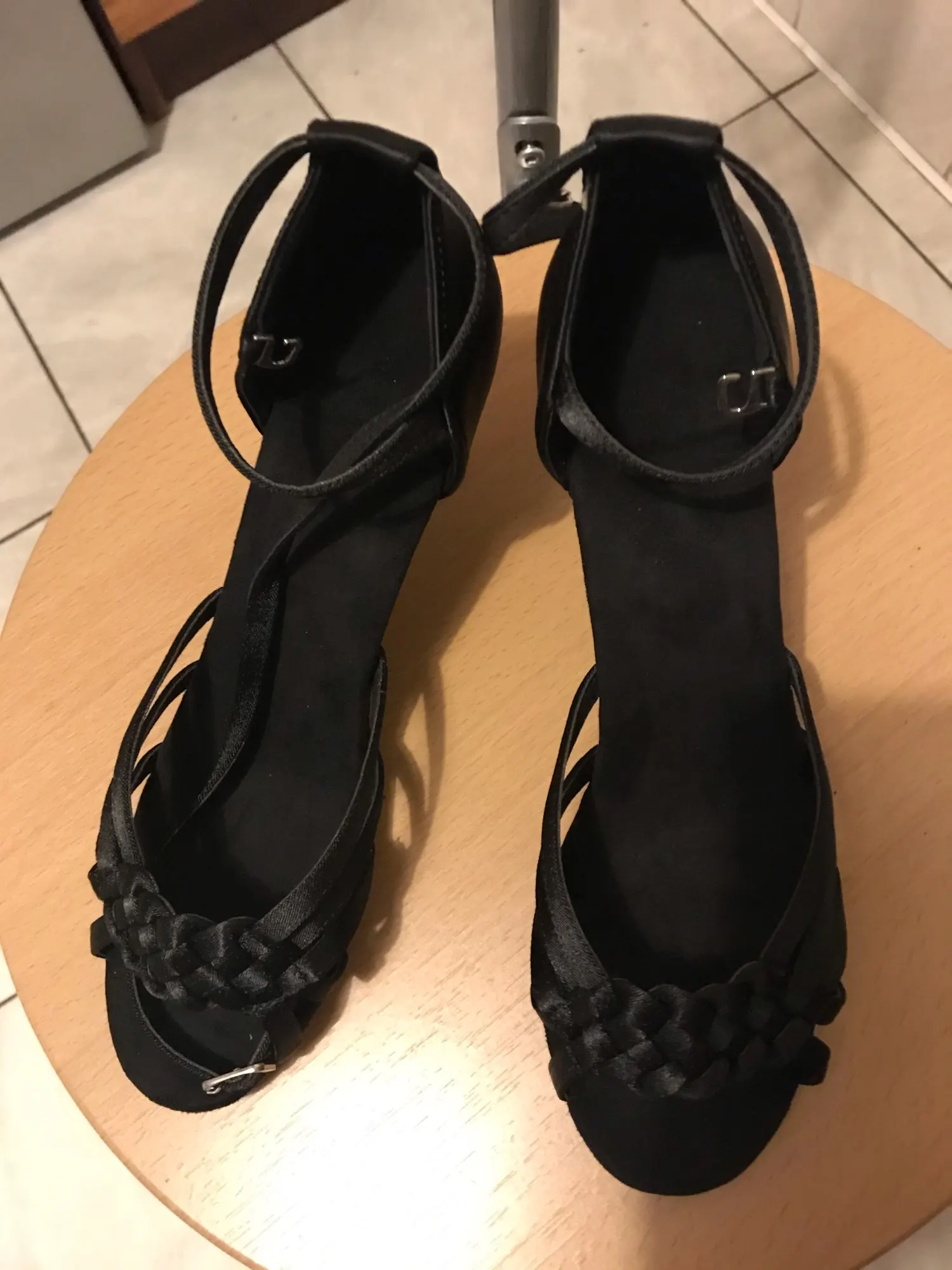 Очень хорошие туфли, особенно за такую цену. На стопу 25,5 взяла размер 8,5. Лучше было взять 9. Красивый цвет, нитки и клей нигде не торчат. Танцую в них много, пока все на месте. Единственный недостаток - широковаты.
