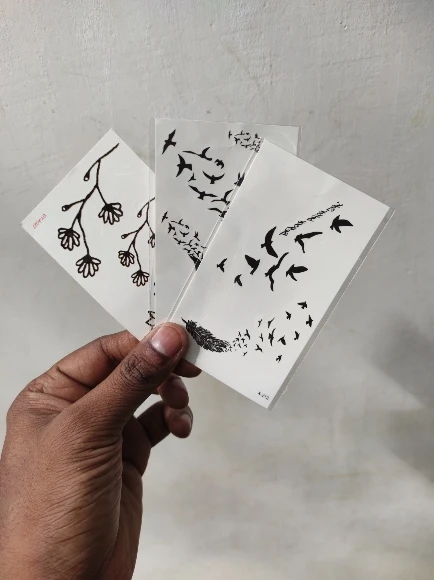Отличные татухи. не срываются очень долго. Ходила с ней больше недели, когда надоела сшоркала её мочалкой.