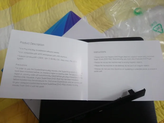 Пришел в объединенной посылке - упакован хорошо, но коробочка чуть помята - ерунда - главное содержимое цело. В картонной коробке (фирменной!) блистер в котором лежит корпус, инструкция и внешняя планка для привода DVD (мне не понадобилась - у меня была родная). Запустилось все с первого раза - проверяйте чтобы привод надежно сел в разъем. Верхний козырек корпуса должен как бы нависать над передней панелью привода. Честная скорость USB3.0 Рекомендую