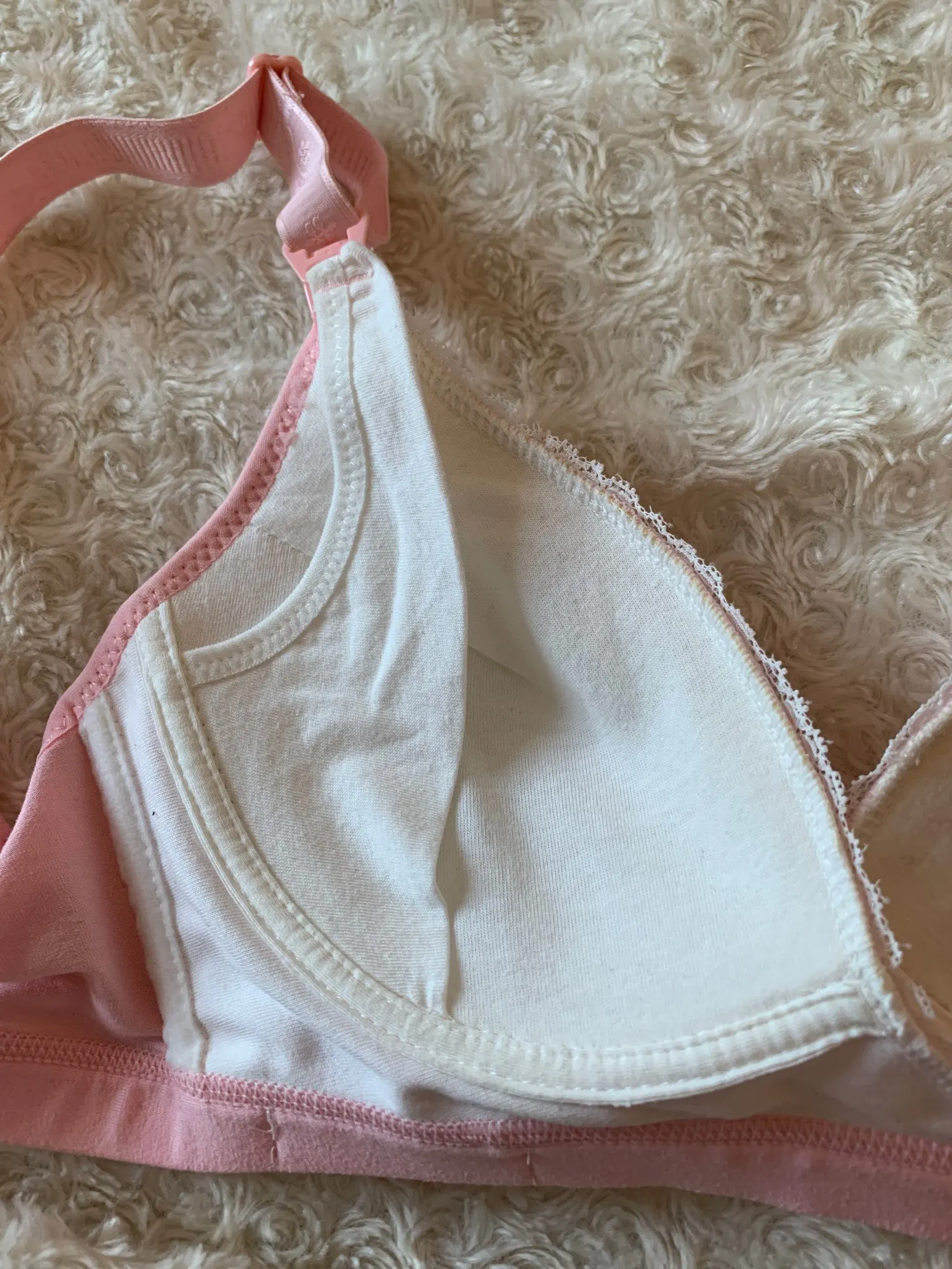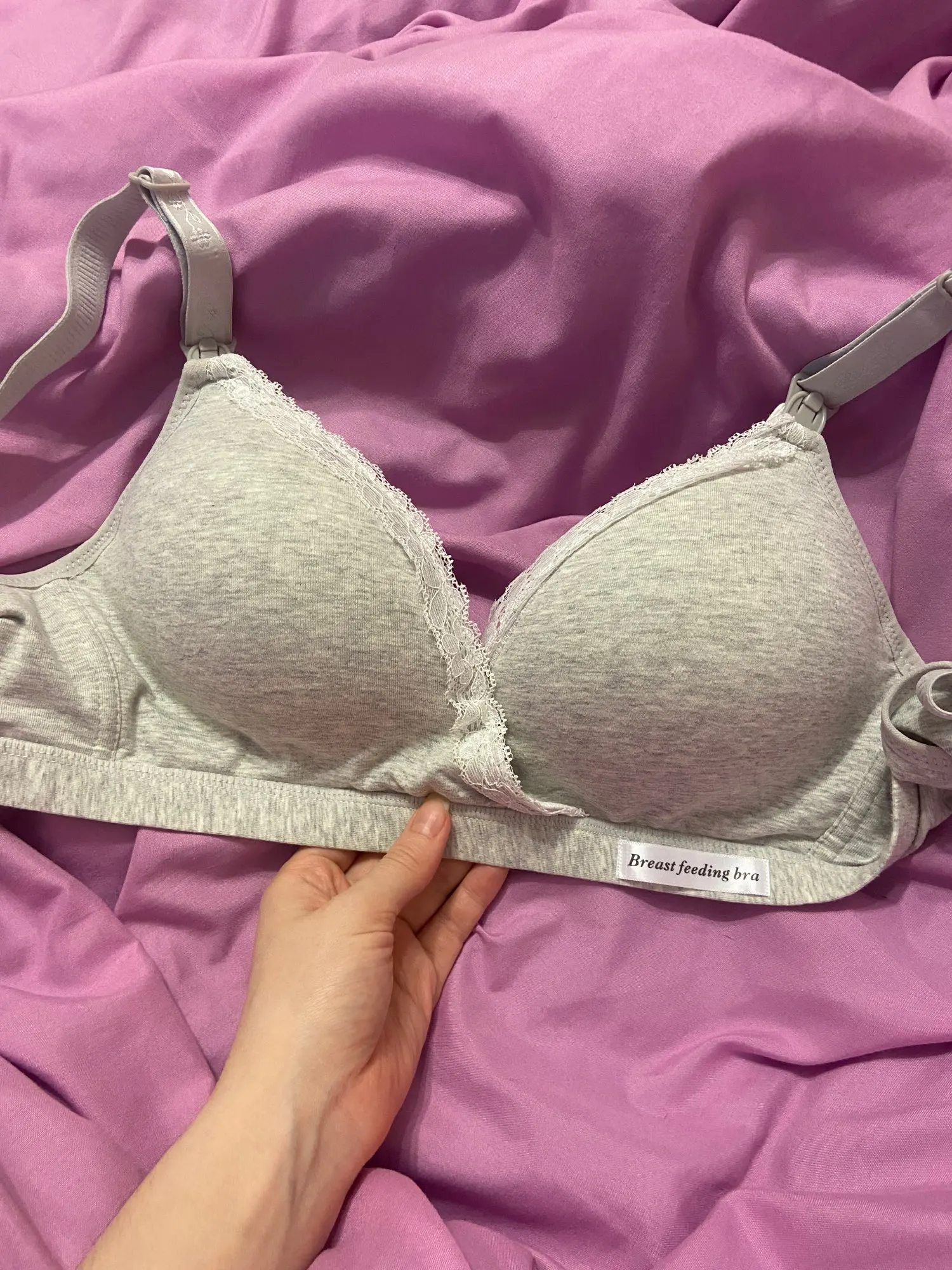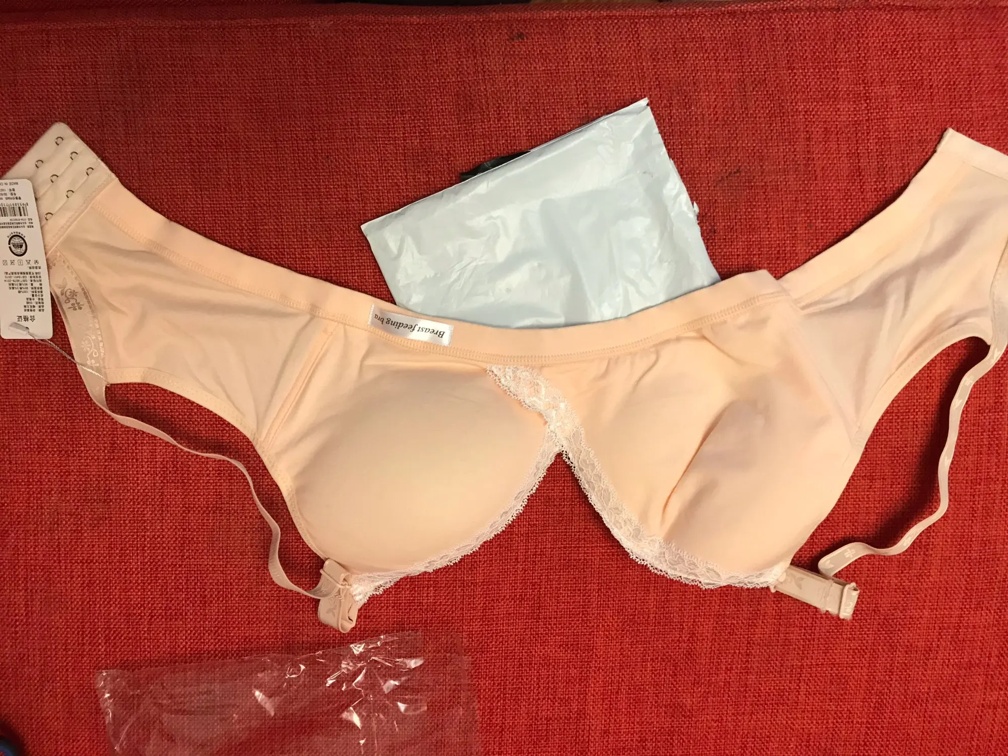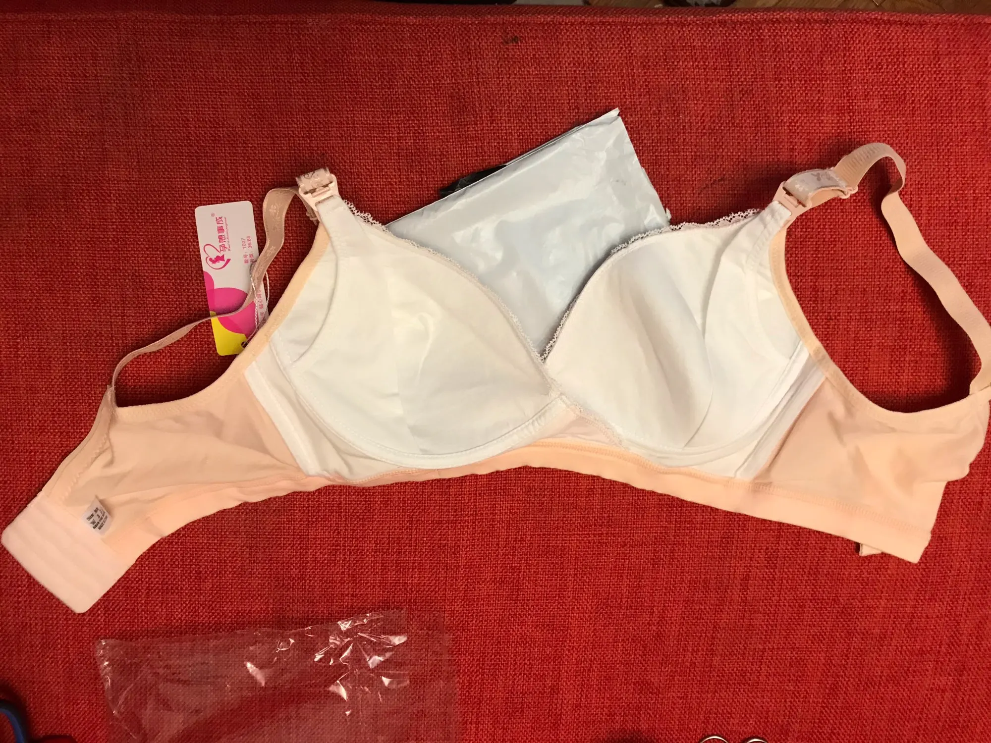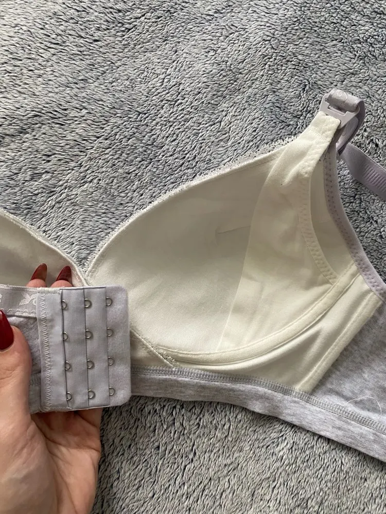 Хороший лифчик, хлопковый, приятный к телу. Взяла размер 38, сейчас ношу 80б, большеват, но брала с учетом, что грудь увеличится с приходом молока. Растегивается. Доставка пришла за месяц. В целом очень довольна товаром!