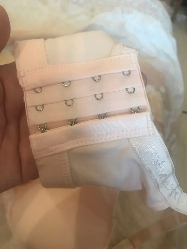 Заказала сразу два бюстгальтера: один с классической застёжкой, кстати очень надежной, второй - топ, надевающийся через голову. На ог 96 и размер под грудью 87 идеально подошел размер 85 xl. Рекомендую ориентироваться по сетке продавца. Бюст-топ нейлоновый, второй - хб. Оба очень приятные, качественные, чашечки остегиваются. Доставка очень быстрая (05.09-22.09), на почту. Продавца и товар рекомендую.