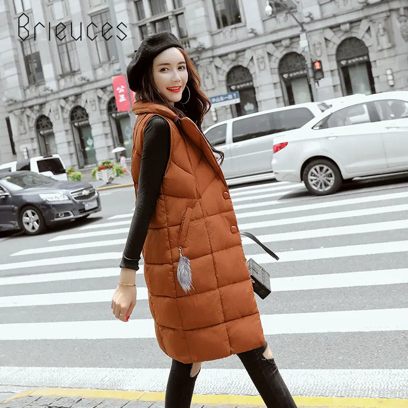 Brieuces 2020, женский жилет, зимняя куртка, утепленный длинный Повседневный жилет с хлопковой подкладкой, женский жилет без рукавов, куртка