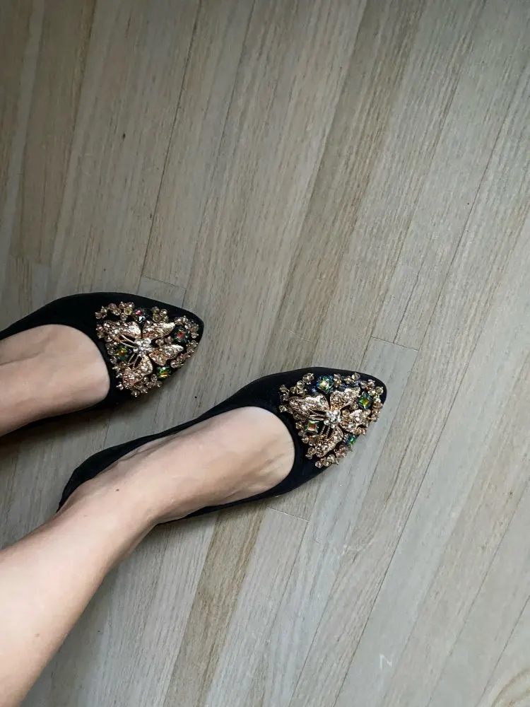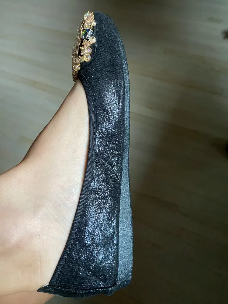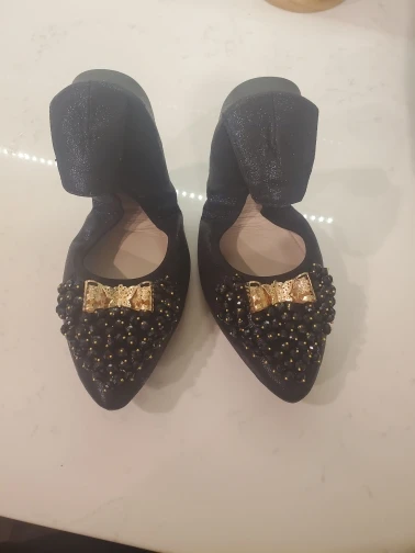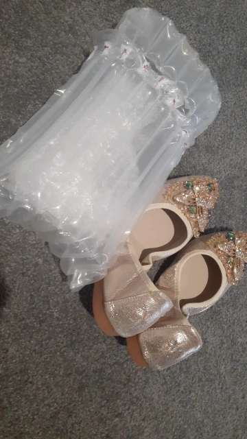 Заказываю уже вторые туфли.Очень красивые,мягкие и удобные.Благодарю продавца за быструю доставку и прекрасную упаковку-вакуумный пакет.Качество стразов,вернее их фиксация на туфлях прочное-нет выпавших и отломавшихся.Благодарю за новогодние подарочки-проивоскользящие стельки и вкладки на пятку.