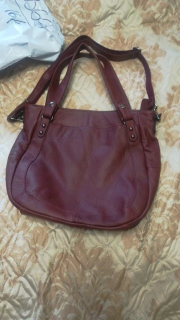 хорошая сумка, очень вместительная , карманы наружные на кнопке и очень большие, сумка выглядит одинаково с одной и с другой стороны , ручки отстегиваются есть ремешок но он очень тоненький и не очень сюда подходит , но при моей не худенькой фигурки прекрасно помещается на плечо.