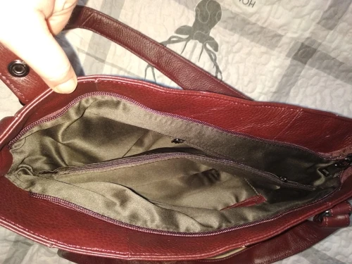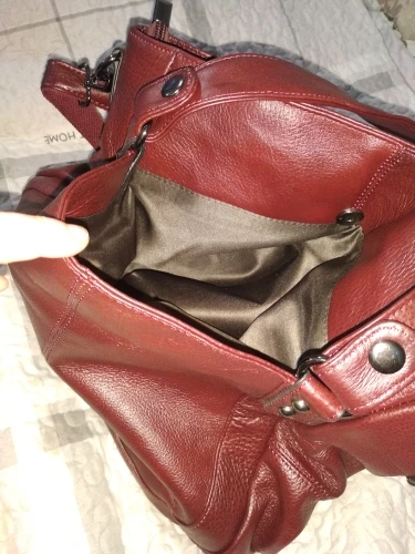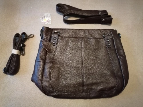 Сумка,просто шикарная. Вместительная,аккуратно сшита,2 отделения,внутри много карманов и ещё с наружи с беих сторон карманы на кнопках. Ручки на кнопках,отстёгиваются,то есть можно их отстегнуть и прицепить большую лямку. Кожа мягкая. Ну в общем,я в восторге.Доставка до Латвии 12 дней.Продавец положил подарочек.Рекомендую и товар и продавца.Большое спасибо.