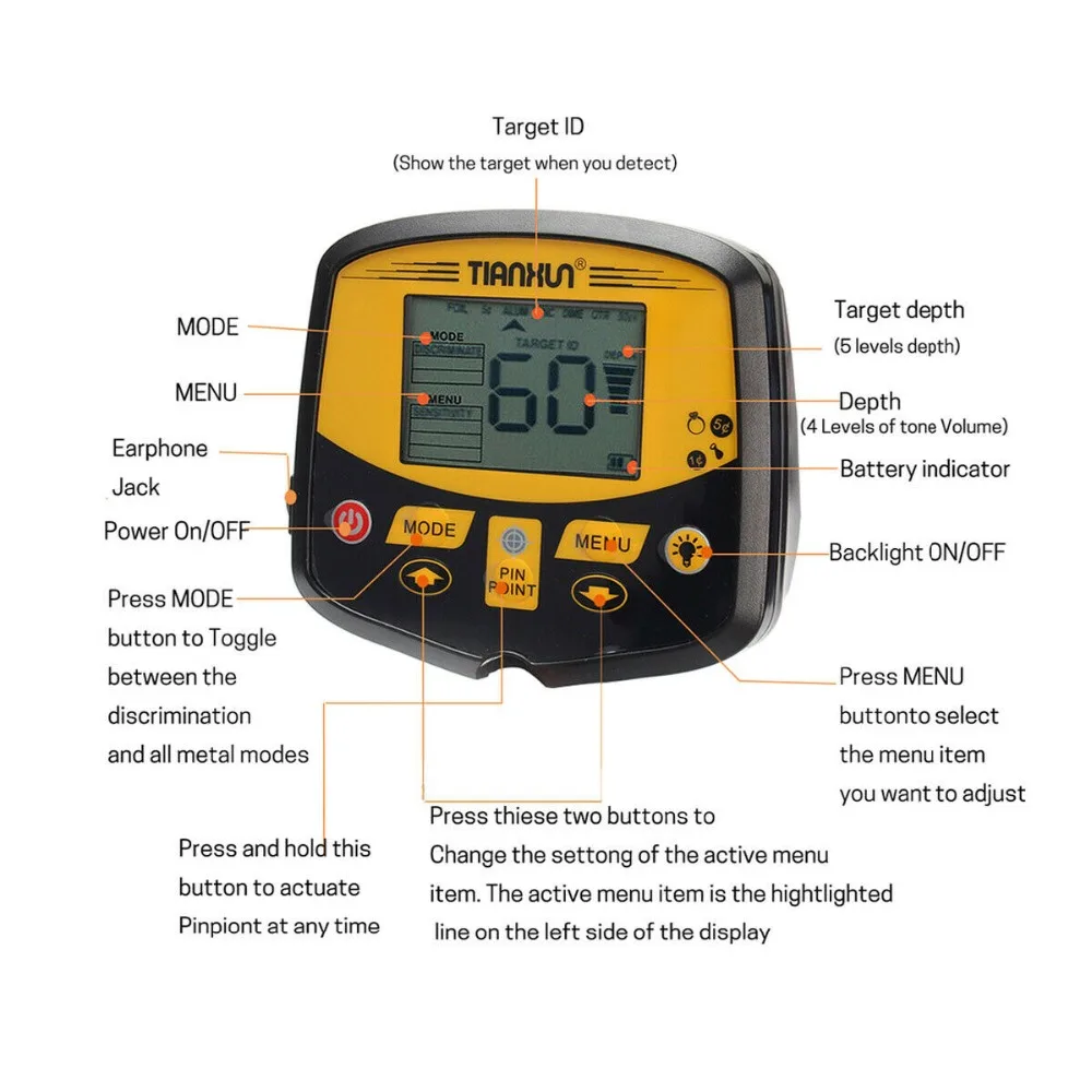 Спецификация:Модель: B73979Название продукта: металлоискательЦвет: черный + коричневыйМатериал: АБС + алюминиевый сплавТип питания: питание от аккумулятораНаличие ЖК-экрана: ДаПринадлежности для DIY: электрическиеГлубина обнаружения: 280 мм3 режима обнаружения: все металлические (обнаружение всех видов металла)(Дискриминирующий тип металла), точечный (найдите точное местоположение цели)3 тона идентификации аудио: низкий тон (ID: 1-39), средний тон (ID: 40-79), высокий тон (ID: 80-99)Обнаружение предметов: металл (железный гвоздь, покрытие из железа, алюминиевое кольцо, маленький алюминиевый продукт, монеты, золото, бронза, серебро)Частота: 7,68 кГцНапряжение: 7,2-9VПитание: 1*9V 6F22 батарея (не входит в комплект)Ток: в режиме ожидания: 40 мА, макс.: 120 мАРежим индикации: режим ЖК-дисплея и режим звукаЧувствительность: регулируемая, уровень 1-12Управление: выключатель питанияОбъем: РегулируемыйПоисковая катушка: водонепроницаемая, взаимозаменяемаяПрименение: тестирование металлического инородного тела сырья, топлива и продуктов питания, обнаружение подземного трубопровода и линии, геологии, исследования, обнаружены похороненные сокровища золота, серебра и металла артефакты.Размер поисковой катушки: 380*290 мм/15,0 * 11.4in (Д * Ш)Размер блока управления LCD: 135*120 мм/5,3 * 4.7in (Д * Ш)Регулируемая высота детектора: 1070 ~ 1340 мм/35,0 ~ 52,8 дюймаРазмер изделия: 380*290*1340 мм/15,0*11,4*52,8 дюймовСертификация стандарта безопасности: CE, RohsЧистые звуковые наушники:Диаметр 40 мм. Драйвер. Блок.Сопротивление: 32 ОмЧастотная характеристика: 20-20,000 ГцМаксимальная потребляемая мощность: 100 мВтЧувствительность: 108дб +/- 3 дБПрямоугольный стерео разъем: 1/4 :( 6,3 мм)Кабель Длина: акустическая гитра 41 "(1 м), 82" (2,1 м) в тех случаях, когда полностью выдвинутыВстроенный регулятор громкостиОсобенности:3 режима обнаружения: Все металлы (обнаруживают все виды металла), диски (дискриминирующий тип металла), точечные (находите точное местоположение цели), отвечающие различным требованиям.3 тона аудио идентификации-низкий тон (ID: 1-39), средний тон (ID: 40-79), высокий тон (ID: 80-99).Ликвидация и ликвидация-игнорируйте нежелательные металлы и нежелательные предметы, чтобы найти ценные металлические предметы, установив устранение и расовую принадлежность.Функция Pinpoint-определение точки-это процесс поиска точного местоположения похороненного объекта с переключаемым ЖК-дисплеем с подсветкой.Регулируемая чувствительность-Настройка 12 видов различных настроек чувствительности для различных целей или условий окружающей среды.Супер большая поисковая катушка DD-15,0 "x 11,4" супер большая Водонепроницаемая поисковая катушка с защитным чехлом для противоударного и безопасного использования.Регулируемая высота металлоискателя-вы можете регулировать длину соединительного стержня для удобного использования.Разъем для наушников-позволяет подключать наушники (в комплекте) и работать без беспокойства.Регулятор громкости-вы можете регулировать выходной объем громкого динамика или наушников.Широкое применение-отлично подходит для обнаружения золотых и серебряных ювелирных изделий, монет и других металлов в земле.Примечание:1. Мы предоставляем четкие изображения, измерения, где это возможно. Пожалуйста, проверьте как можно больше, чтобы убедиться, что товар тот, который вам нужен.2. Замеры сделаны вручную, поэтому возможны 0,5-1 дюйм раз