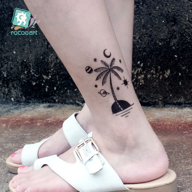 Временные татуировки Rocooart Moon Mountain, экологическая поддельная татуировка, Planet Tatuajes Ocean Taty, кокосовое дерево, водонепроницаемые татуировки