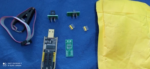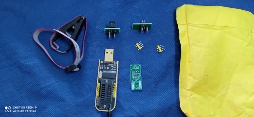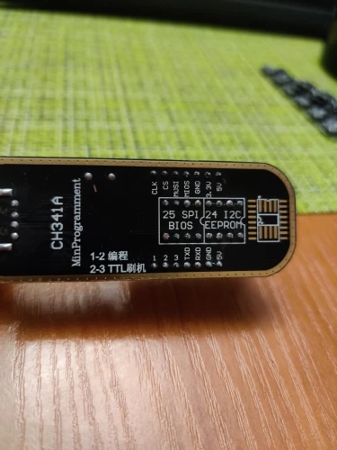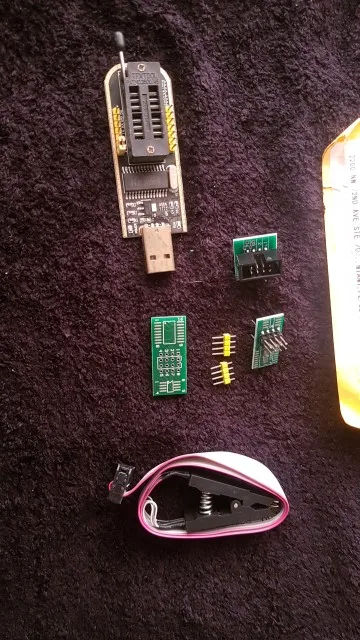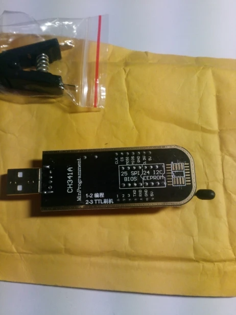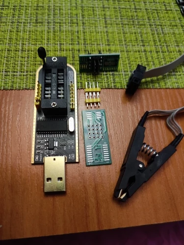 программатор работает, тестировал на биосе видеокарты. Пайка всех элементов, кроме адаптеров - аккуратная!!!. А вот пластик прищепки очень мягкий, и после нескольких подключений повредился в районе контактов. также на печатной плате адаптера было повреждение текстолита, но на удивление сама дорожка осталась целой. Запаковывайте надёжнее посылки.