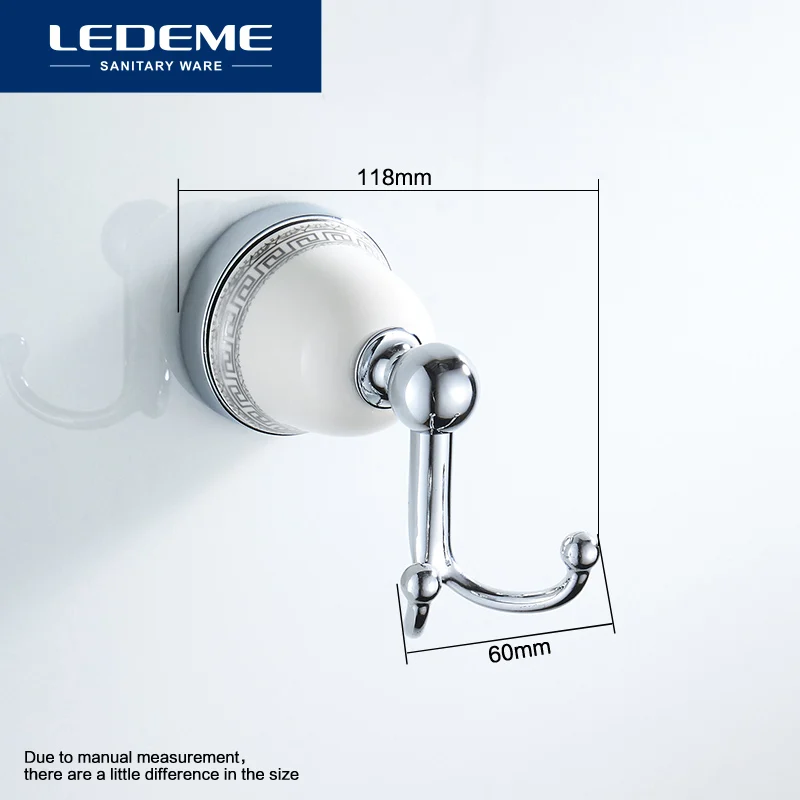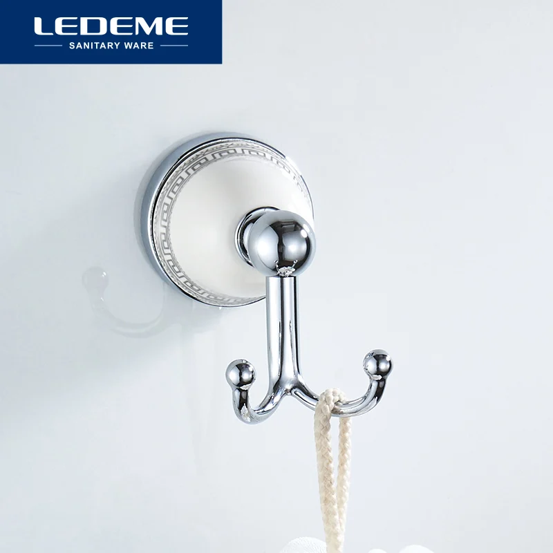 LEDEME крючки двойные крючки Chrome стены вешалка ткань крюк стены крюк для Ванная комната аксессуары вешалка полезно L3605-2