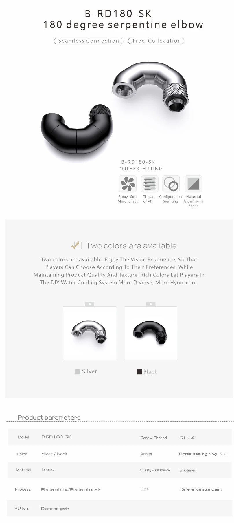 Bykski 4 секции 180 градусов локоть поворотный фитинг разъем B-RD180-SK