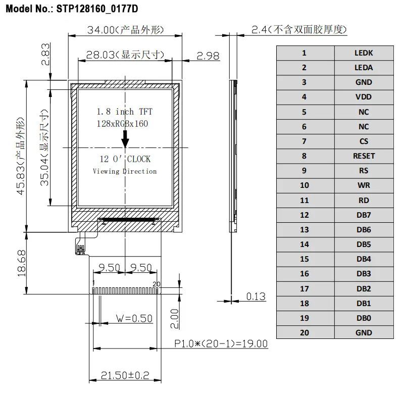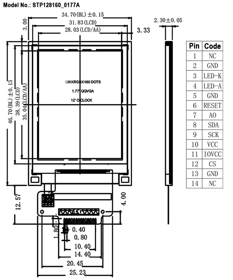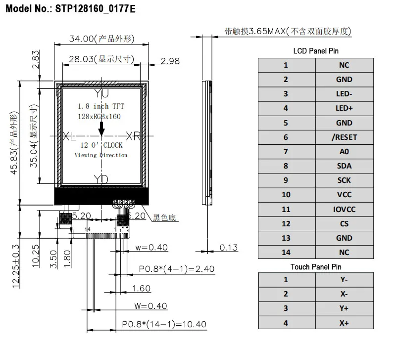 ЖК-модуль ST7735, 1,771,8 дюйма, 128*160, последовательный SPI 8_Bit MCU TFT, панель экрана, LCM, встроенная сенсорная панель