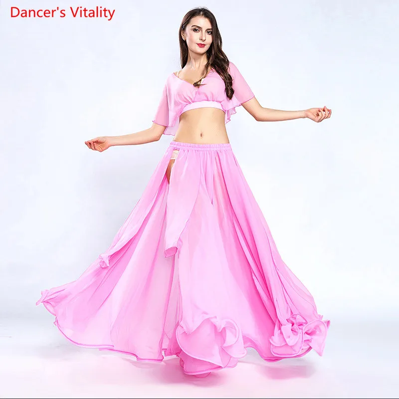 Новый женский шифон костюм летний 2 шт. Танец живота юбка танцовщица представления Costumes11 цветов бесплатная доставка