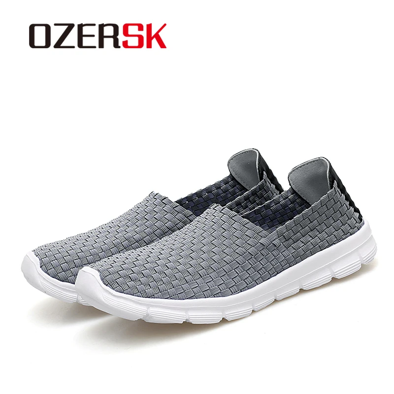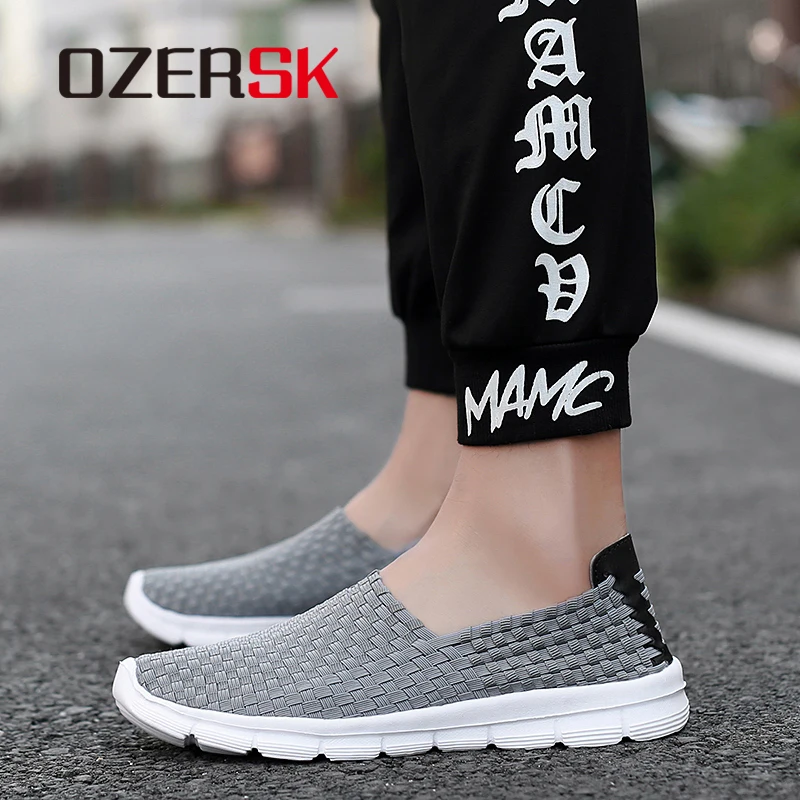 Кроссовки OZERSK мужские легкие, дышащие сникерсы, плоская подошва, плетеные удобные, повседневная обувь без шнуровки, большие размеры 38-45