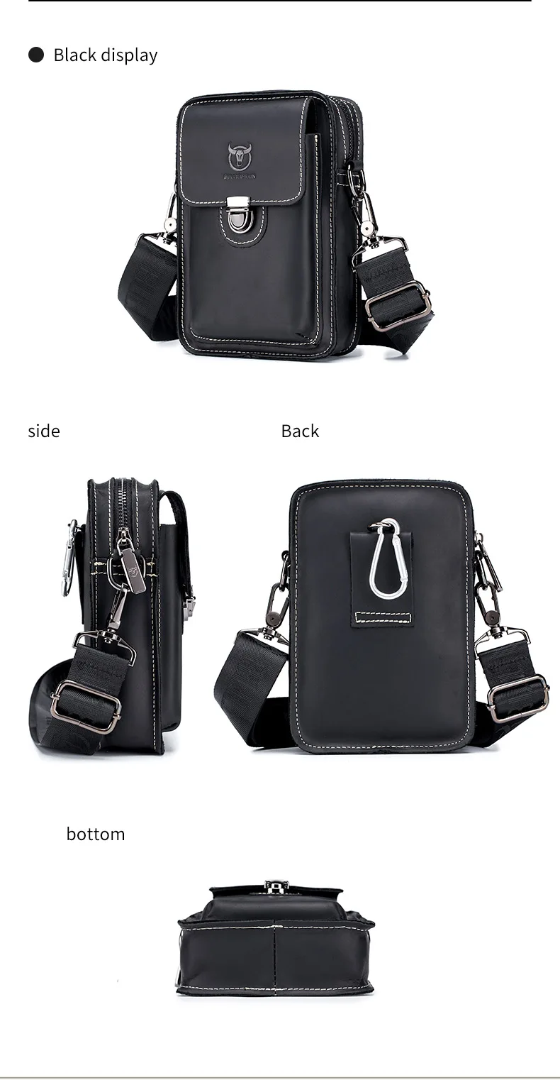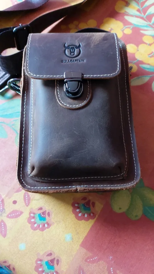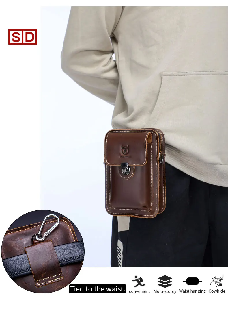 Мужская кожаная поясная сумка BULLCAPTAIN Crazy horse, сумка для телефона, сумка для талии, Мужская маленькая нагрудная сумка на ремне, задняя Сумка, pack075