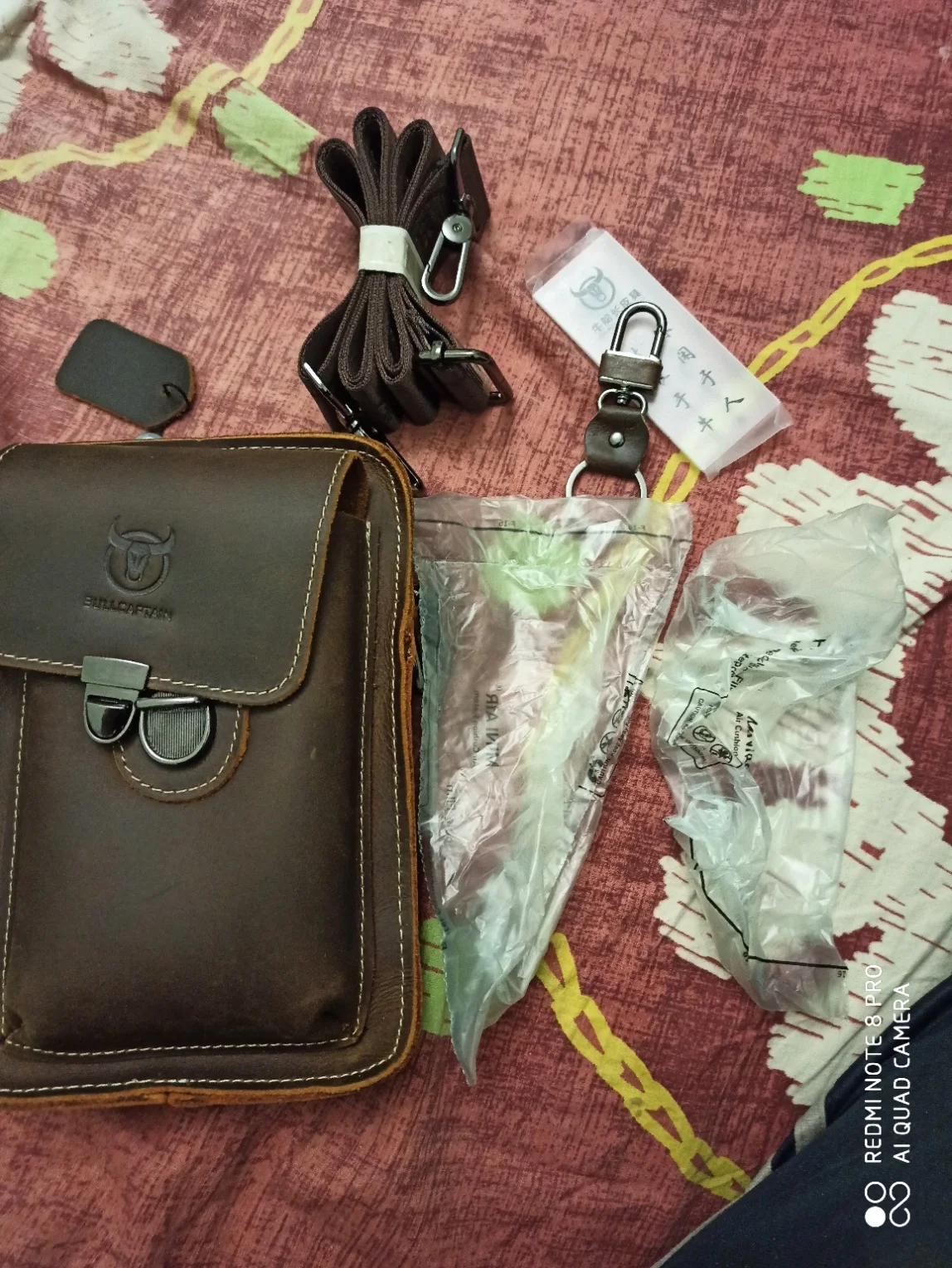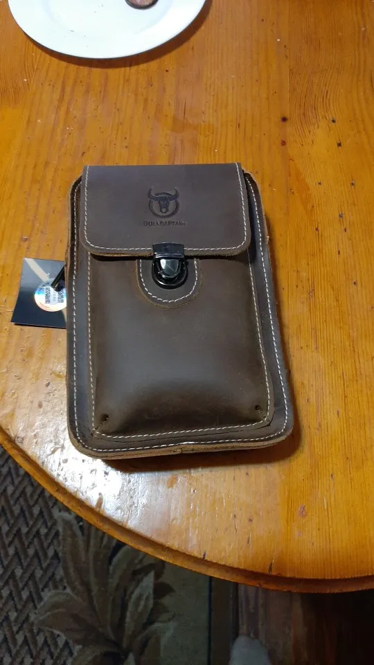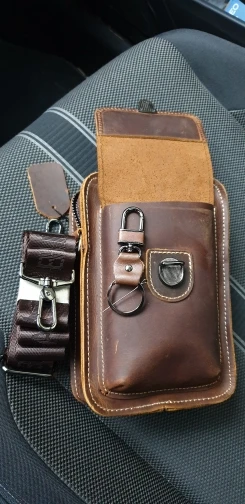 Абсолютно то, что ожидал, за искл сроков доставки - 10 дней после оплаты, такая скорость в Ростов-на-Дону впечатляет.. Кожа толстая - два мм. Мягкая в меру, цвет очень приятный. Металлические детали темно-серые под лаком непревзойдённого качества. В наружный карман на защелке с небольшим зазором поместился Редми 8 про в противоударном чехле 167х83х11 мм. Также он помещается внутри, отделённым тонкой перегородкой от остального объёма 190х130х40 мм. Ремешок для ношения через плечо, что вряд ли, ибо надо на поясе. Брелок для ключей, которым давным-давно найдено своё место, так что придётся передарить. В целом - выше всяких похвал.