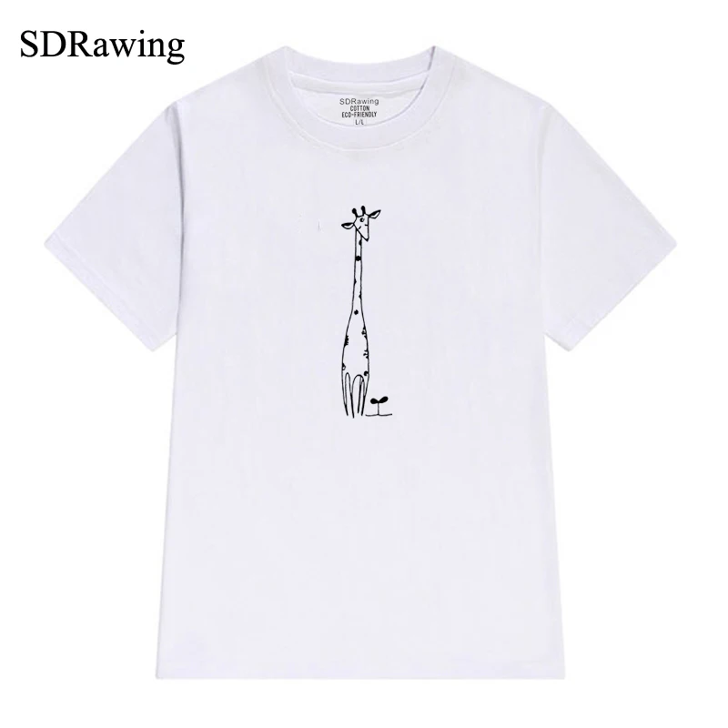 Футболка женская хлопковая с принтом жирафа, милая сувенирная одежда с рисунком животного, для влюбленных, хипстерский Топ для лета