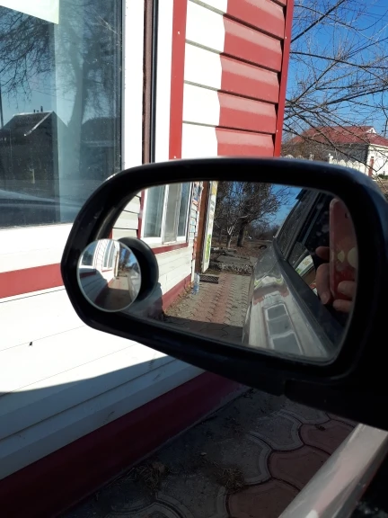 Всем салам получил я это зеркальце качество обалденное на фото видно полезная штука хотел прикрепить салон но боюсь можно рукой зацепить и отломать так что приклеил на боковое зеркало клеится офигенно думаю после мойки будет держаться в комплекте салфетка для обезжиривания Ну в общем товар хороший и зеркальце по-моему не пластмассовая а стекло что радует пришло просто в коробке и почтовый пакет Что удивительно цилинь Кая коробка не помятая истекло ни грамма никаких царапин Так что что ребята покупайте и доставка очень быстрая за это продавцу респект и Пять звёзд в общем полезная штука