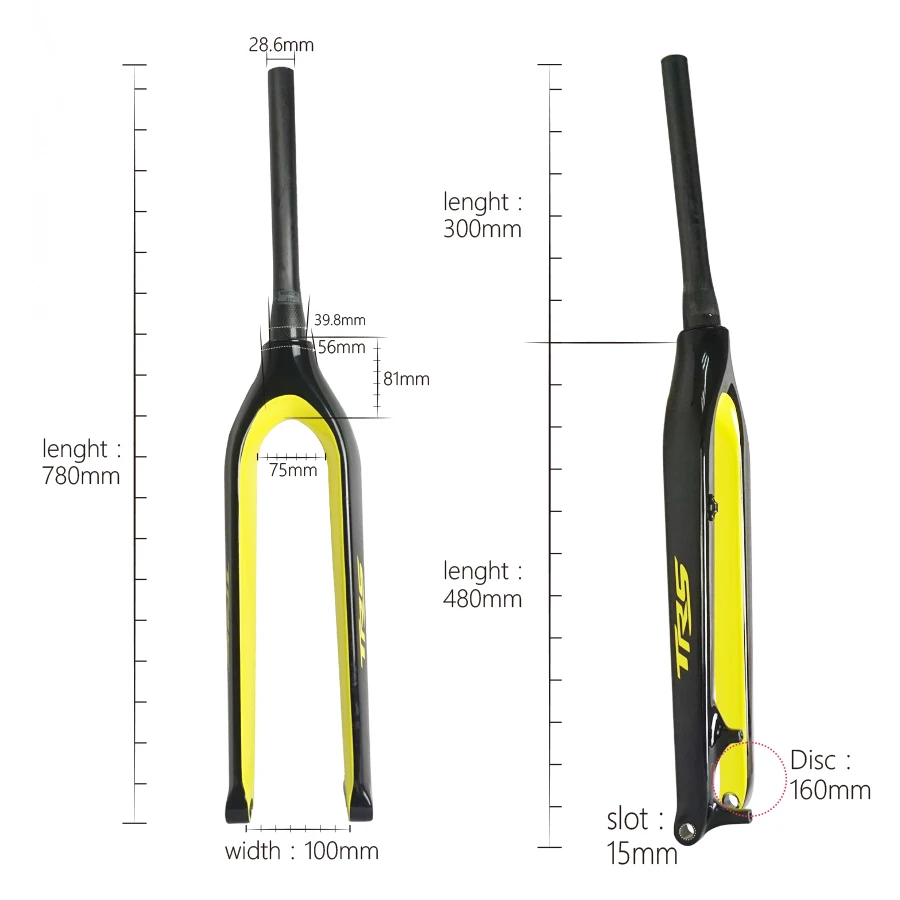 Вилка велосипедная коническая из углеродного волокна, упорная 29er, 3K через ось 15 мм, быстросъемный 9 мм дисковый тормоз 160 мм