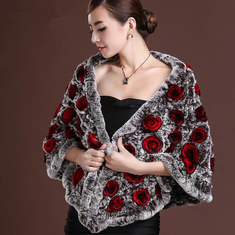 ZDFURS * Дамская элегантная Длинная накидка из натурального меха кролика Рекс, зимняя новая модная шаль из натурального меха розы для женщин