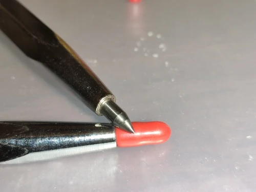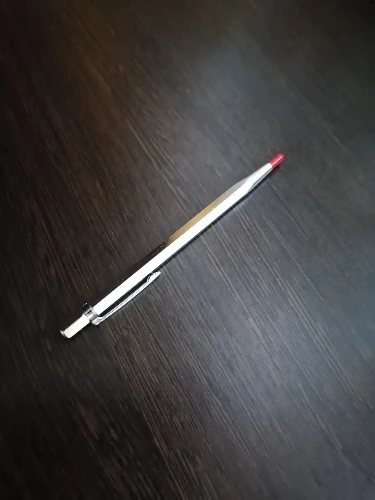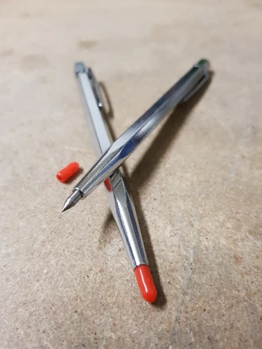 Отличные чертилки. Стекло, сталь, кафель - отметка ровная, четкая, хорошо заметная. Менять стержни нельзя, впаяны жестко. Есть крепление, типа как у шариковой ручки, держит хорошо. комплектная насадка на острие уже пролюбилась, но подошел колпачок от какой-то ручки.