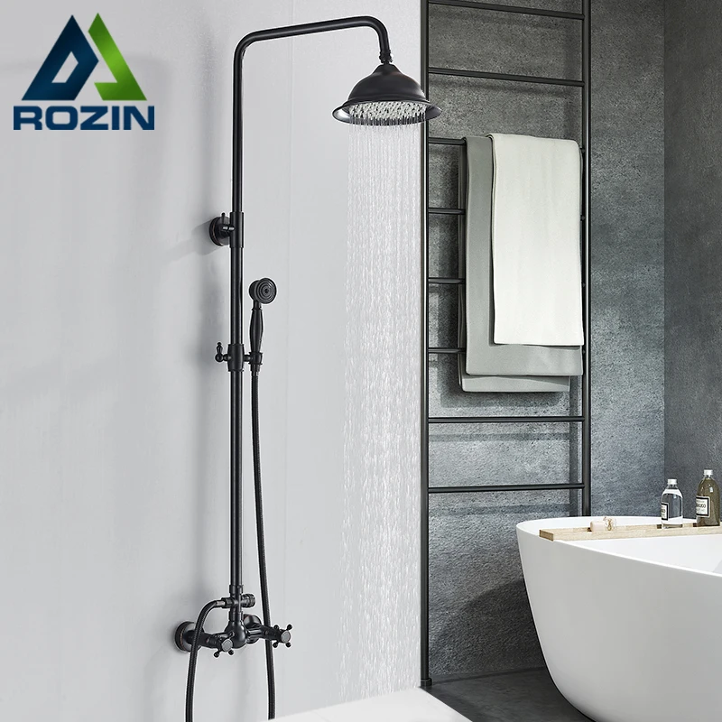 Смеситель для ванной комнаты смеситель для душа в форме дождя с двойной ручкой латунь черный смеситель для душа настенное крепление Смеситель для душа в форме дождя кран ручной душ