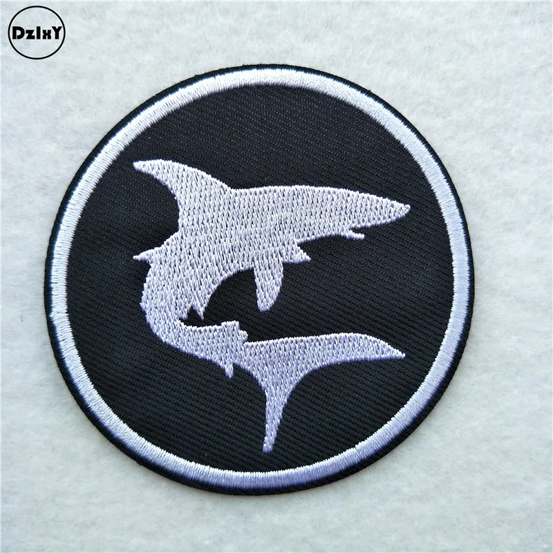 Круглые нашивки с вышивкой акулы для полосок на рюкзаке, наклейки на ткань, аппликации для одежды @ F-18