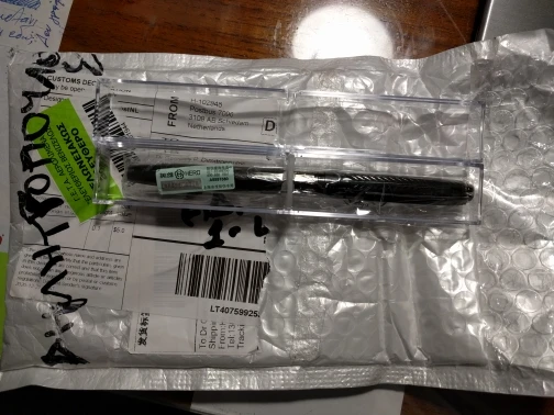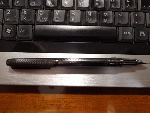 super careful packaging; has seal of original product; writes very well. Nib is like an elongated Parker Vector. Body deep anthracite grey. Screw uncap and screw post, like a Cross Century. About same weight as a Cross Century II. Delivery was very delayed, although shipped early by the very good seller. Happy, would buy again. Greetings from Athens.