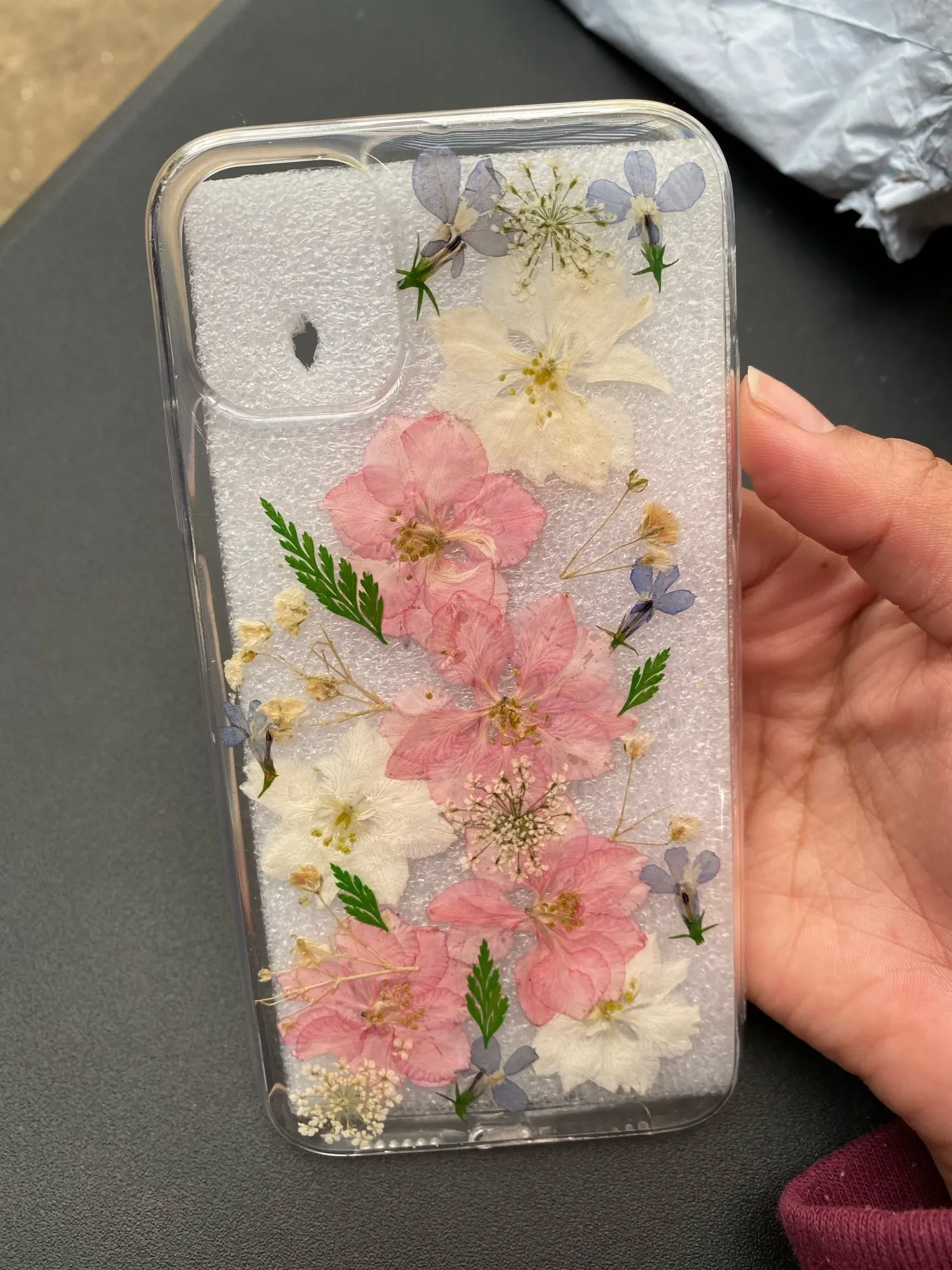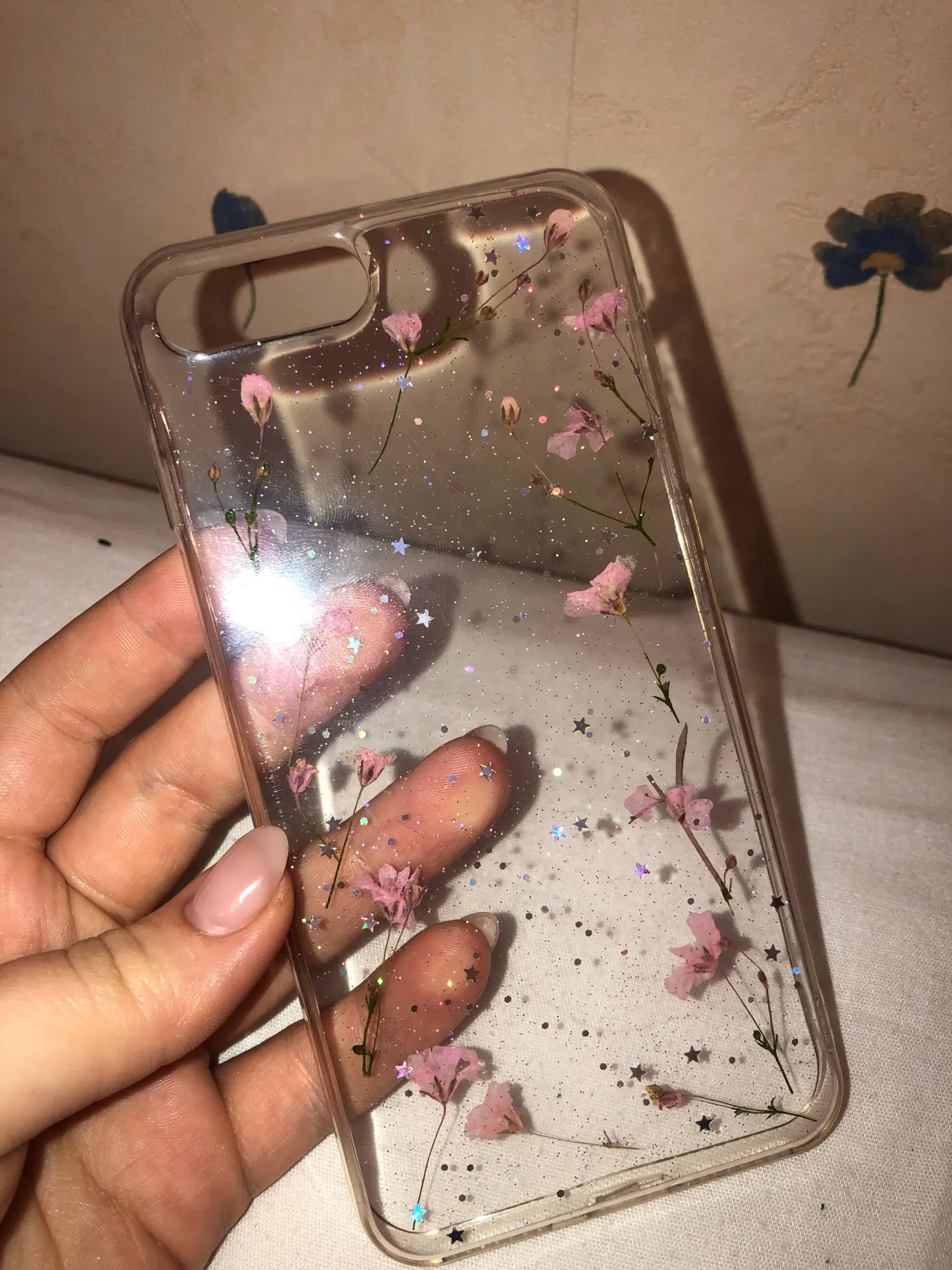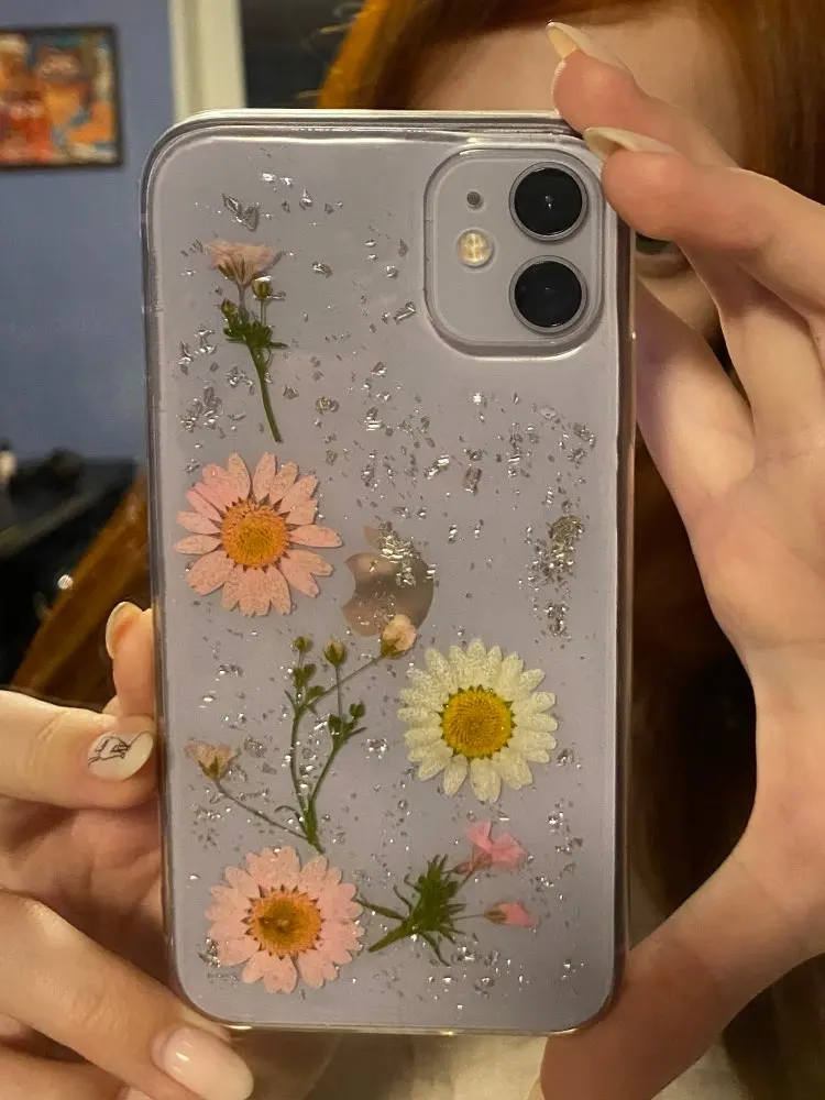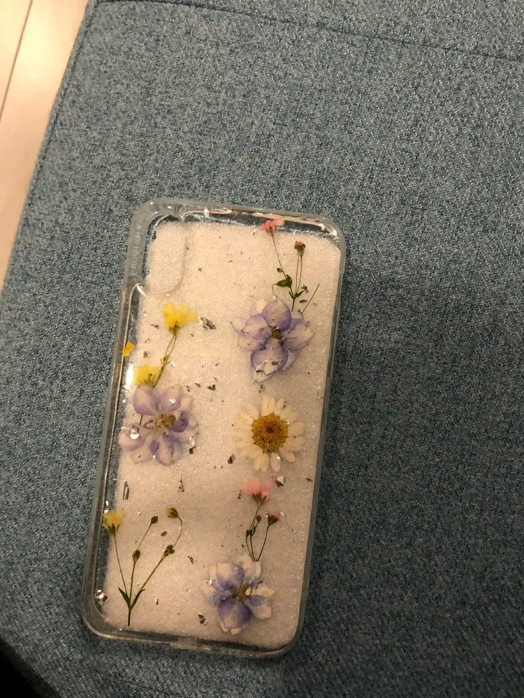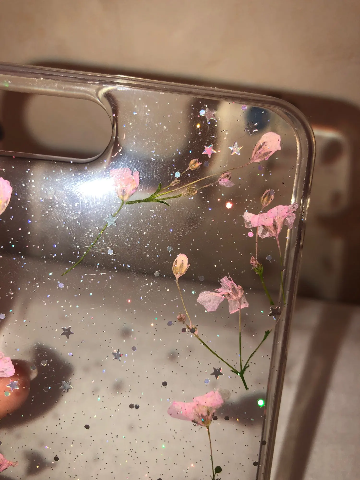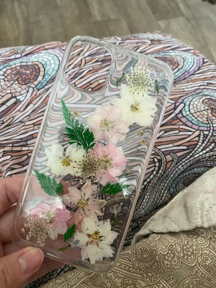 Ожидала чехол с блестками,приехал без,но цветы красивые