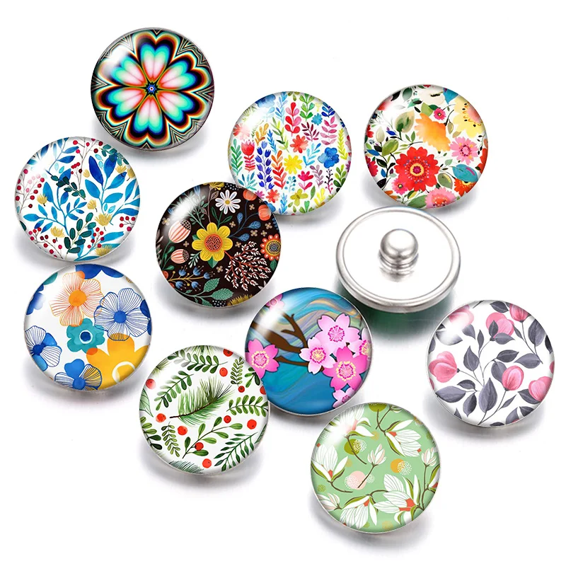 DB0490; Цветочный узор; 18 мм кнопки 10 шт. круглые фото кабошоны р...