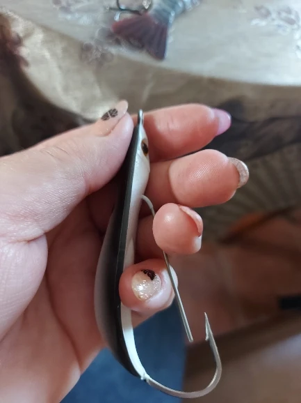 Получил в течение 30 дней. Приманка немного больше, чем ожидалось, особенно крючок, немного великовата.