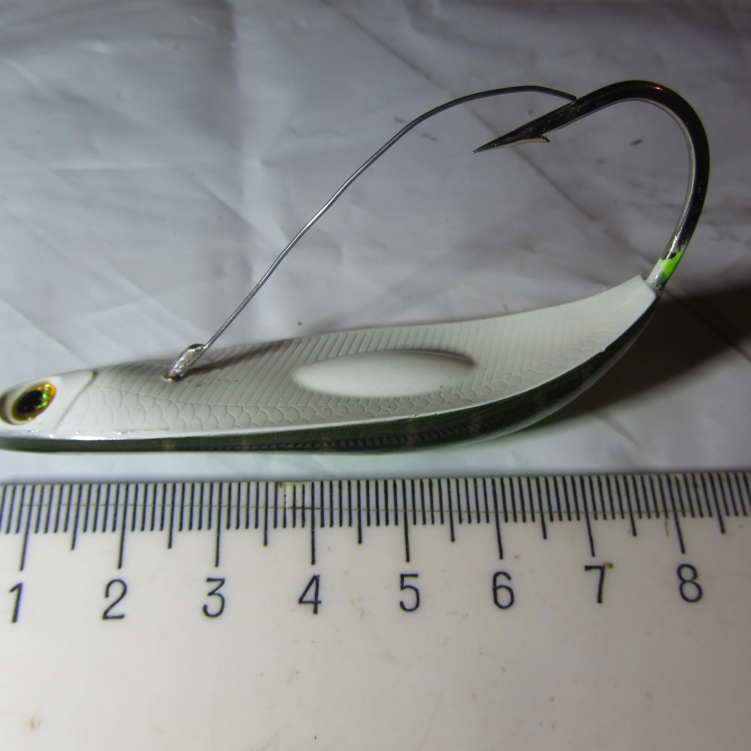 На фото не очень хорошо видно размер крючка, он большой и отводная проволока очень толстая, не гнётся, придётся заменить на более тонкую иначе рыбу не засечь.