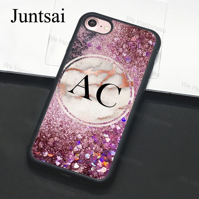 Блестящий розовый золотой мраморный чехол с инициалами имени на зак...