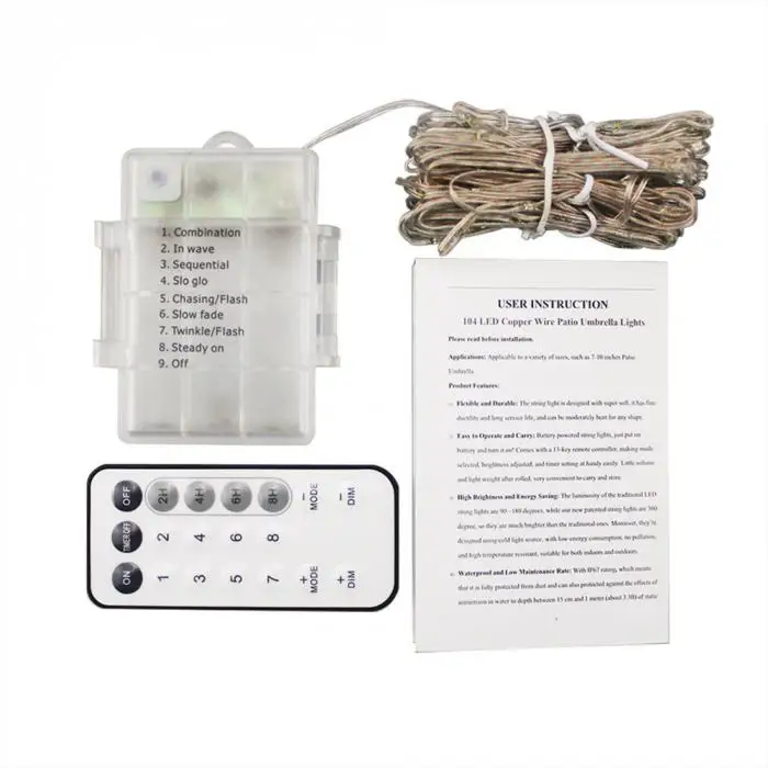 104 светодиосветодиодный, 8 струн, зонт для внутреннего дворика, светодиодная светильник рлянда с дистанционным управлением, наружный сад, декор для свадебной вечеринки -- M25
