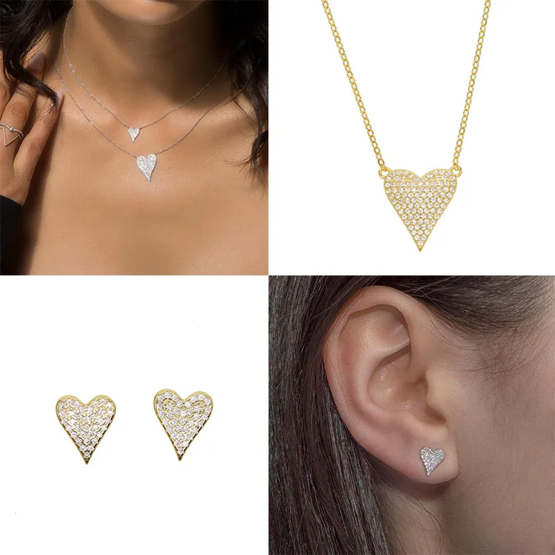 Настоящее серебро 925 пробы, милые мини блестящие серьги с кубическим цирконием в виде сердца, комплект с ожерельем, милые девушки, женские модные изысканные подарочные комплекты ювелирных изделий