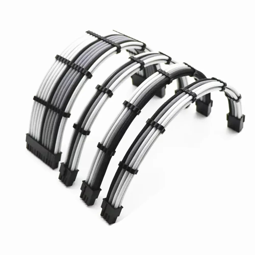 180 градусов полный белый 4 мм ПЭТ основной удлинитель питания комплект 1 шт. ATX 24Pin 1 шт. EPS 8Pin 2 шт. PCI-E 6 + 2Pin