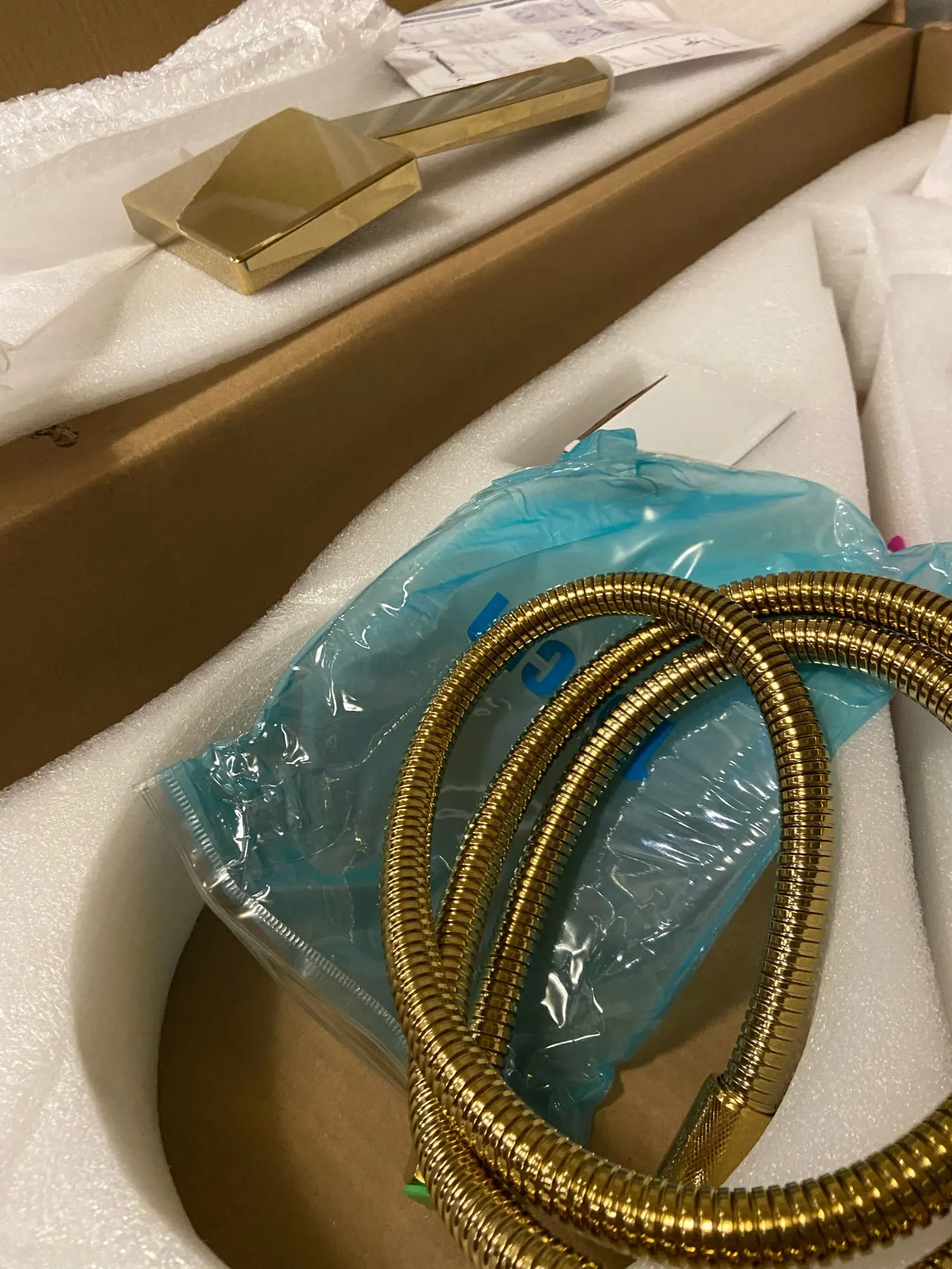 душ шикарный!Всё до мелочей вложено и отдельно упаковано, даже фум лента от протечек))цвет ярко золотой,не матовый как хотелось мне.очень качественный кран,всем рекомендую!доставка до Тюмени менее 2 недель. благодарю продавца!фото добавлю после установки.