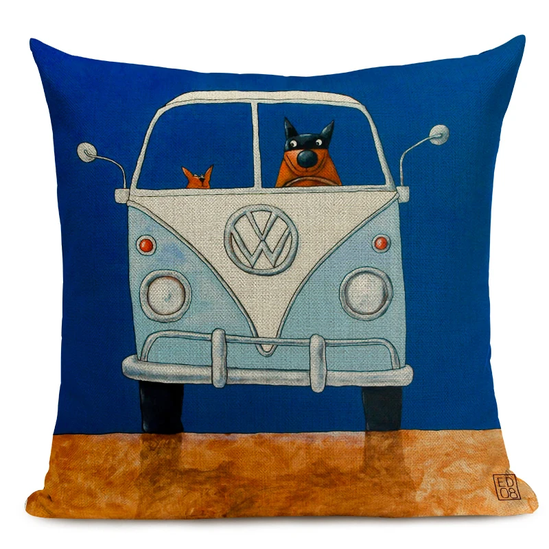 Лидер продаж, подушка, милая мультяшная собака, кошка, цвет, для вождения автомобиля, винтажная Подушка Almofadas 45x45 см, льняная декоративная льняная подушка, наволочка