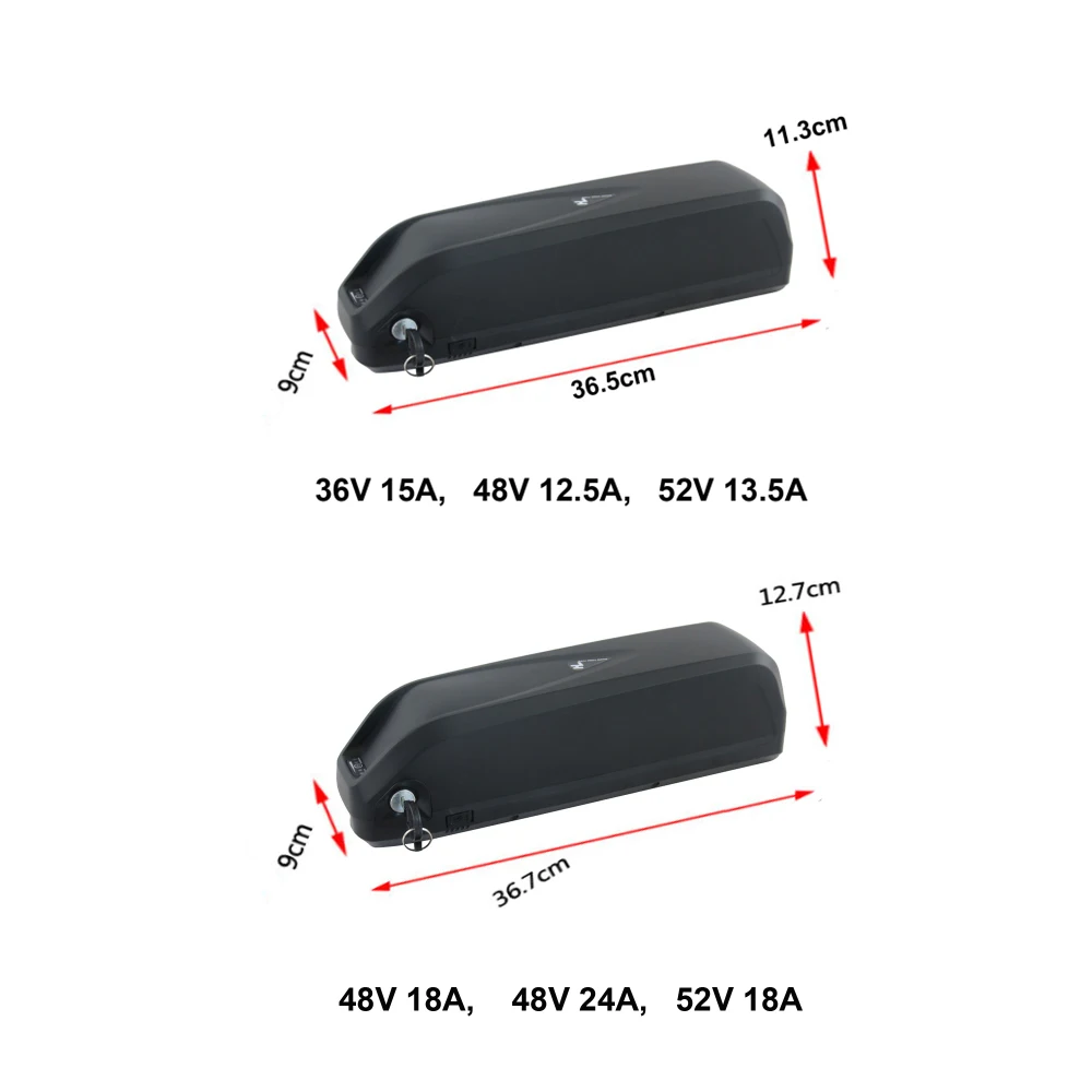 Характеристики аккумулятора для электровелосипеда:Номинальное напряжение: 48 ВНоминальная мощность: АчТип состава: 13 серий, 5 деталей, 13S5PЯчейки: мощные 18650 3,7 в, 2500 мАчBMS: 30 А, непрерывная 100 ± 10 А, максимумПодходящий Двигатель Мощность: 48 В, 500 Вт, 750 Вт, 1000 ВтТок заряда: 2-5аПредельное напряжение заряда: 54,6 вПредельное напряжение разряда: 39 вТемпература разряда: от-20 до 65 °CТемпература заряда: от 0 до 45 °CРазмеры: 90*110*360 ммВес батареи: 3,7 кгСрок службы: ≥ 80% емкости после 800 циклов.48В 14,5 АчСотовый SamsungEBB48V14.5AHL3HSXХарактеристики аккумулятора для электровелосипеда:Номинальное напряжение: 48 ВНоминальная мощность: 14,5 АчТип состава: 13 серий, 5 деталей, 13S5PЯчейки: Аккумуляторы Samsung F1L 18650 3,7 в 2900 мАчBMS:30 А непрерывная 70 ± 10 А максимумПодходящий Двигатель Мощность: 48 В 1000 Вт, 1500 ВтТок заряда: 2-5аПредельное напряжение заряда: 54,6 вПредельное напряжение разряда: 39 вТемпература разряда: от-20 до 65 °CТемпература заряда: от 0 до 45 °CРазмеры: 90*110*360 ммВес батареи: 3,7 кгСрок службы: ≥ 80% емкости после 800 циклов.