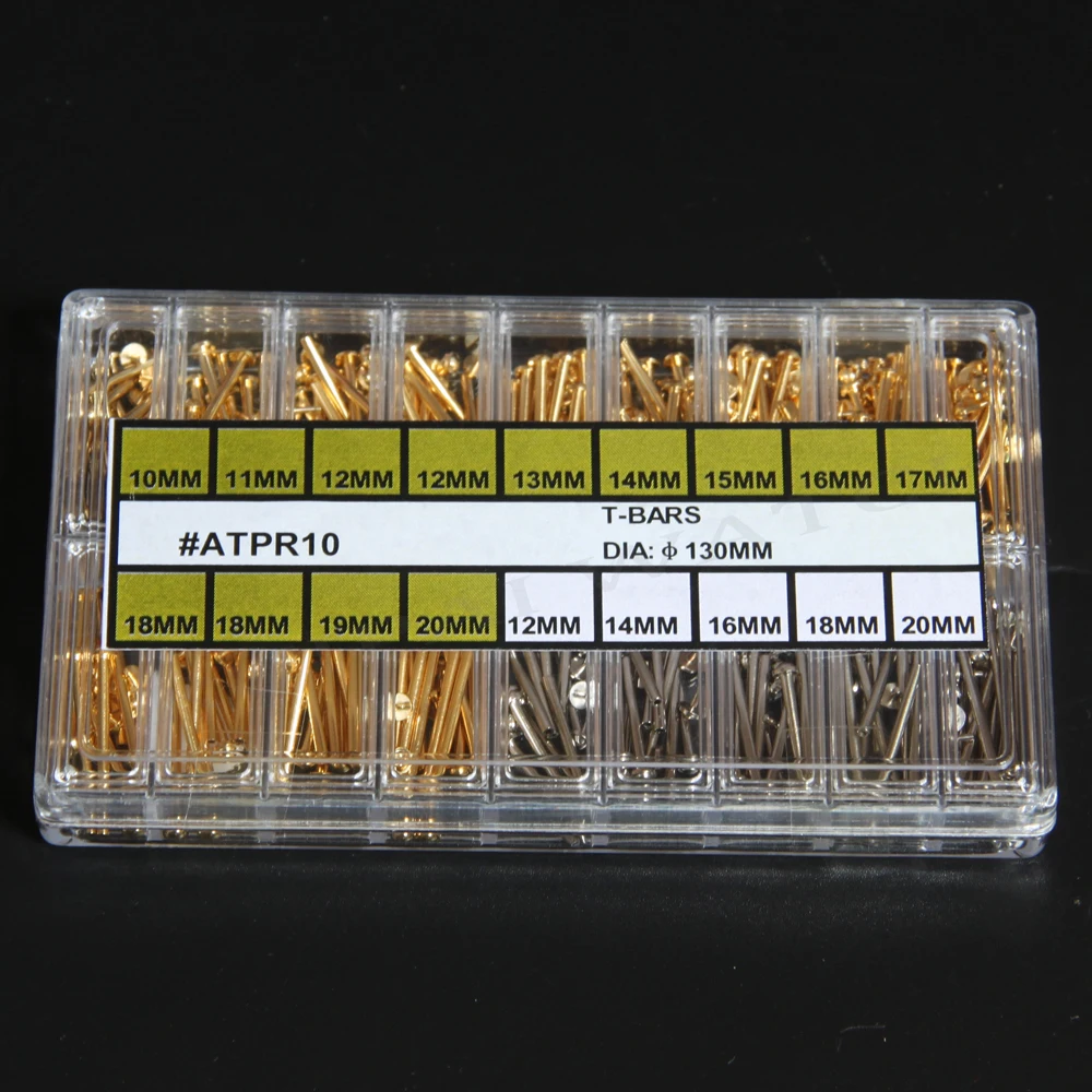 Наконечники Т-образные с круглой головкой, серебристые и золотистые, диаметр 1,3 мм, 180 шт.