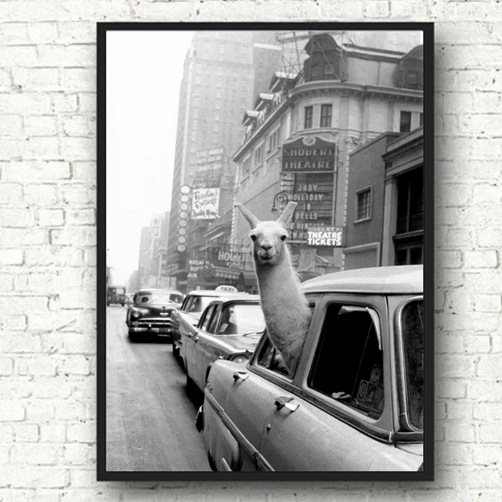 Лама в Нью-Йоркском городском такси настенная живопись холст скандинавские постеры и принты фотографии животных на стену для гостиной домашний декор